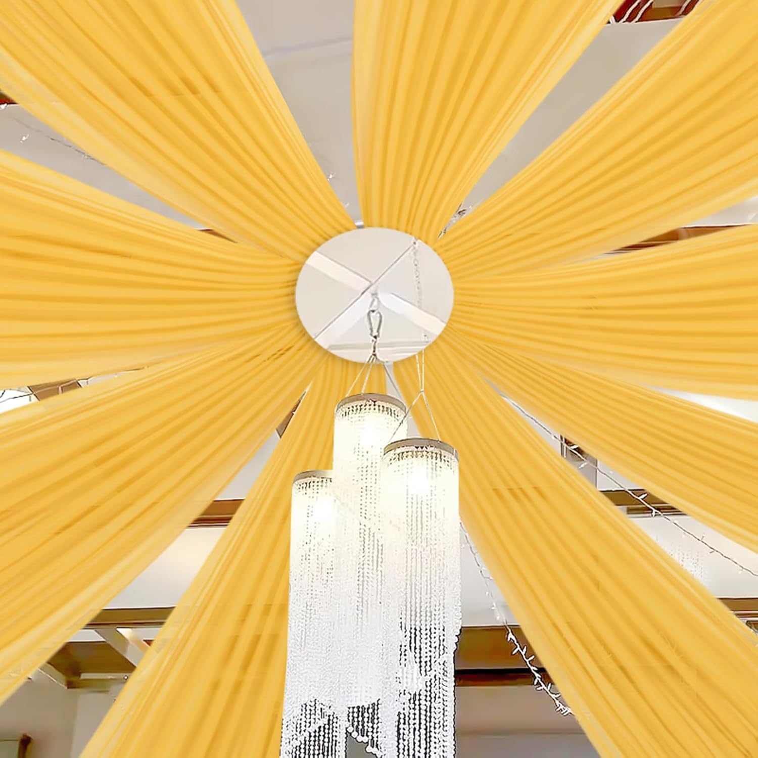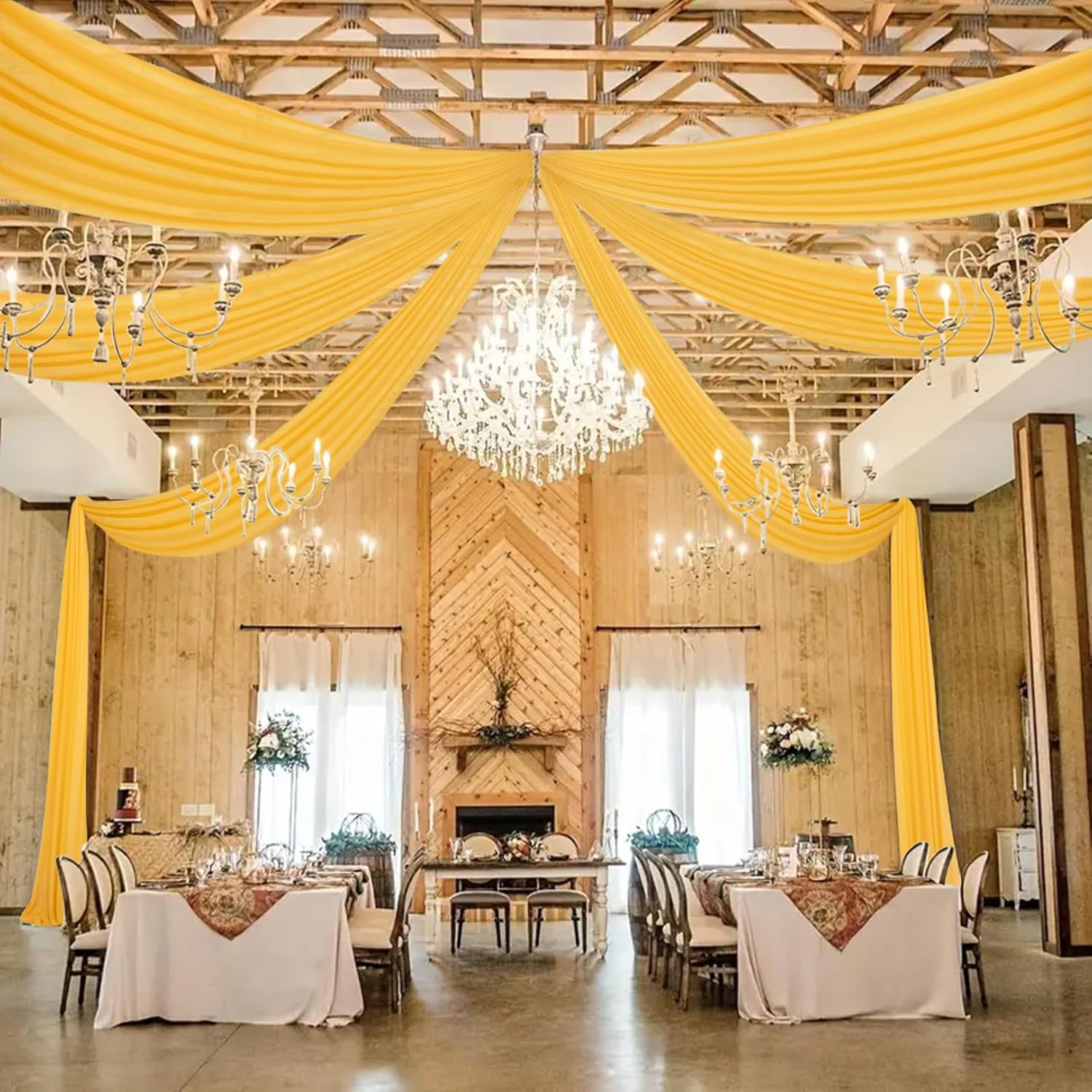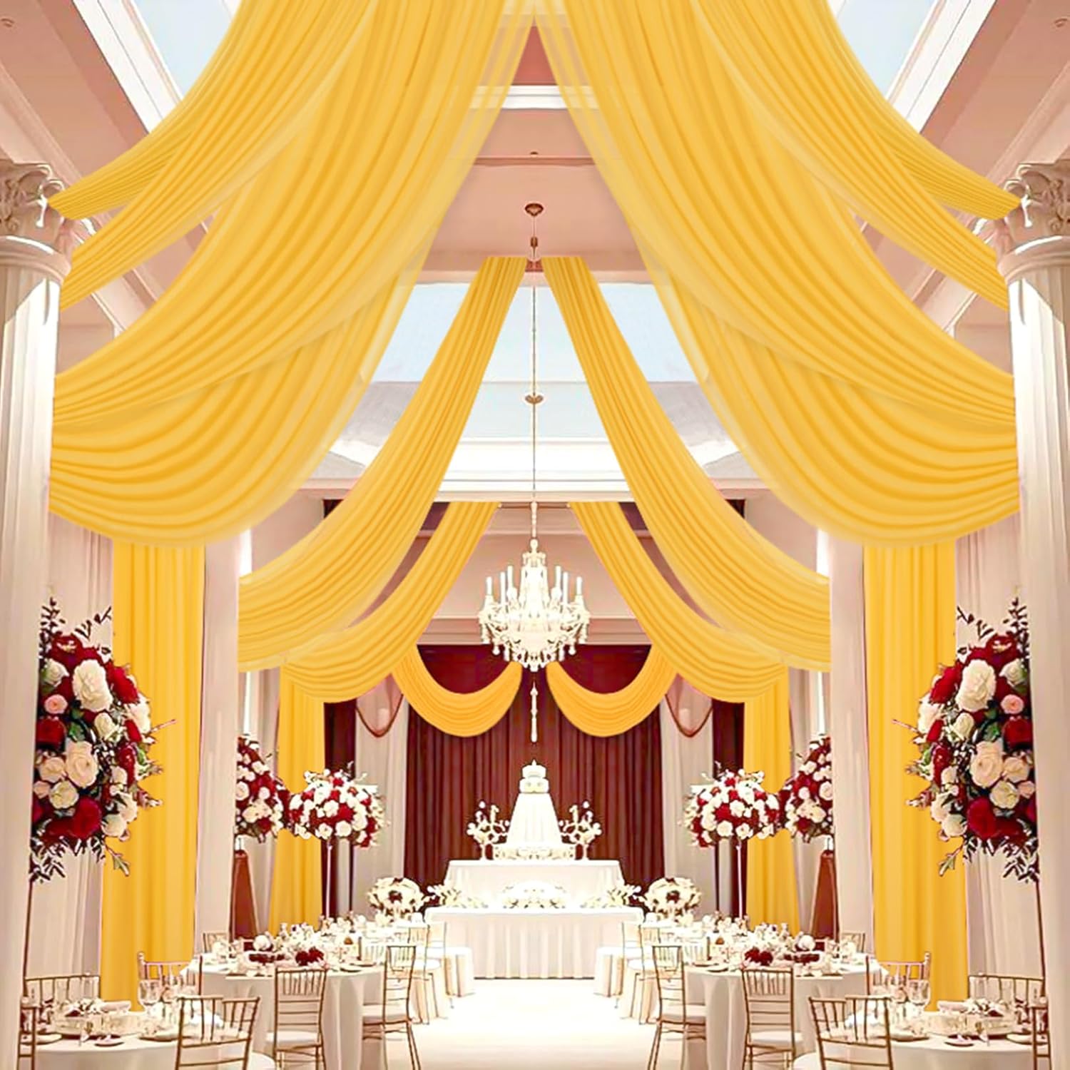 DUOBAO Chiffon Ceiling Drapes 20FT 6 Panels Gold Sheer Wedding Backdrop Curtains for Indoor Events Banquet Hall Tent Drapery Soft Draping Fabric for Arches Christmas and Photography