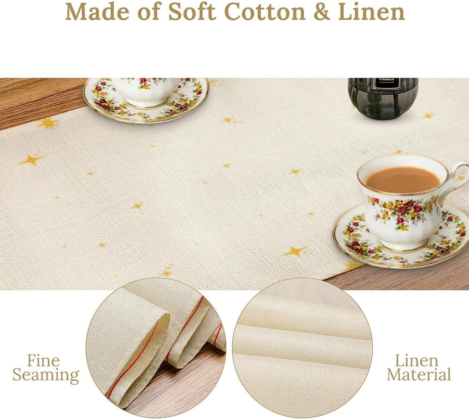Mushroom Kitchen Table Runner, Gothic Moon Star Plants Witchy Moonlit Flower Butterfly Table Runner for Kitchen Dinner Living Room Drapes, 13x120 Inch White