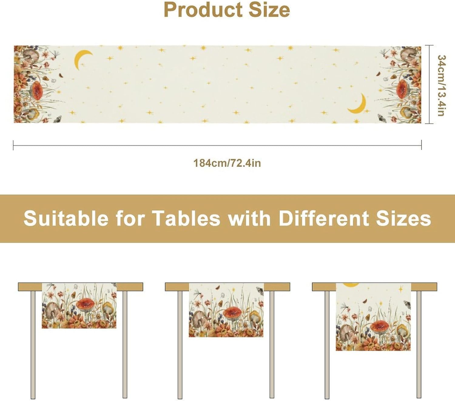 - The product includes: a table runner with a size of 13x70 Inch