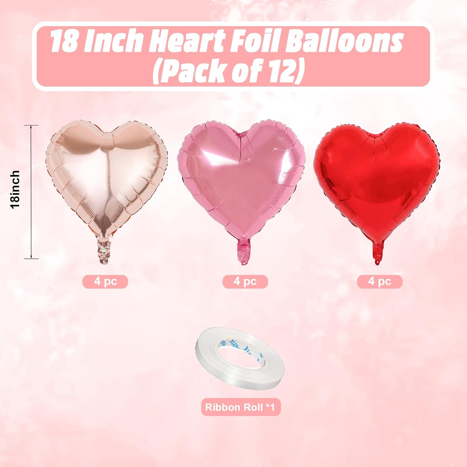 - Charming Rose Gold Heart Balloons: Elevate your celebration with our set of 12 heart-shaped red pink rose gold balloons, each measuring 18 inches. Accompanied by a ribbon, these balloons are ideal for creating a festive and loving atmosphere at any special event.