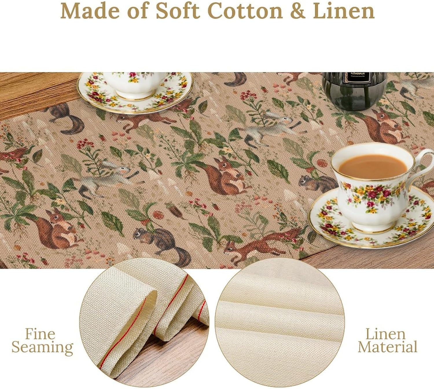 - Various Occasions: The cute table runner widely used in the kitchen, dining room, outdoor table, parties, birthday, or any other special occasion. Suitable for most rectangular table, round table and square table. The watercolor woodland table runners not only as dining table but also tea table, shoe cabinet, washing machine and TV stand, etc. It's also an ideal gift for Christmas, birthdays, weddings or parties as well.