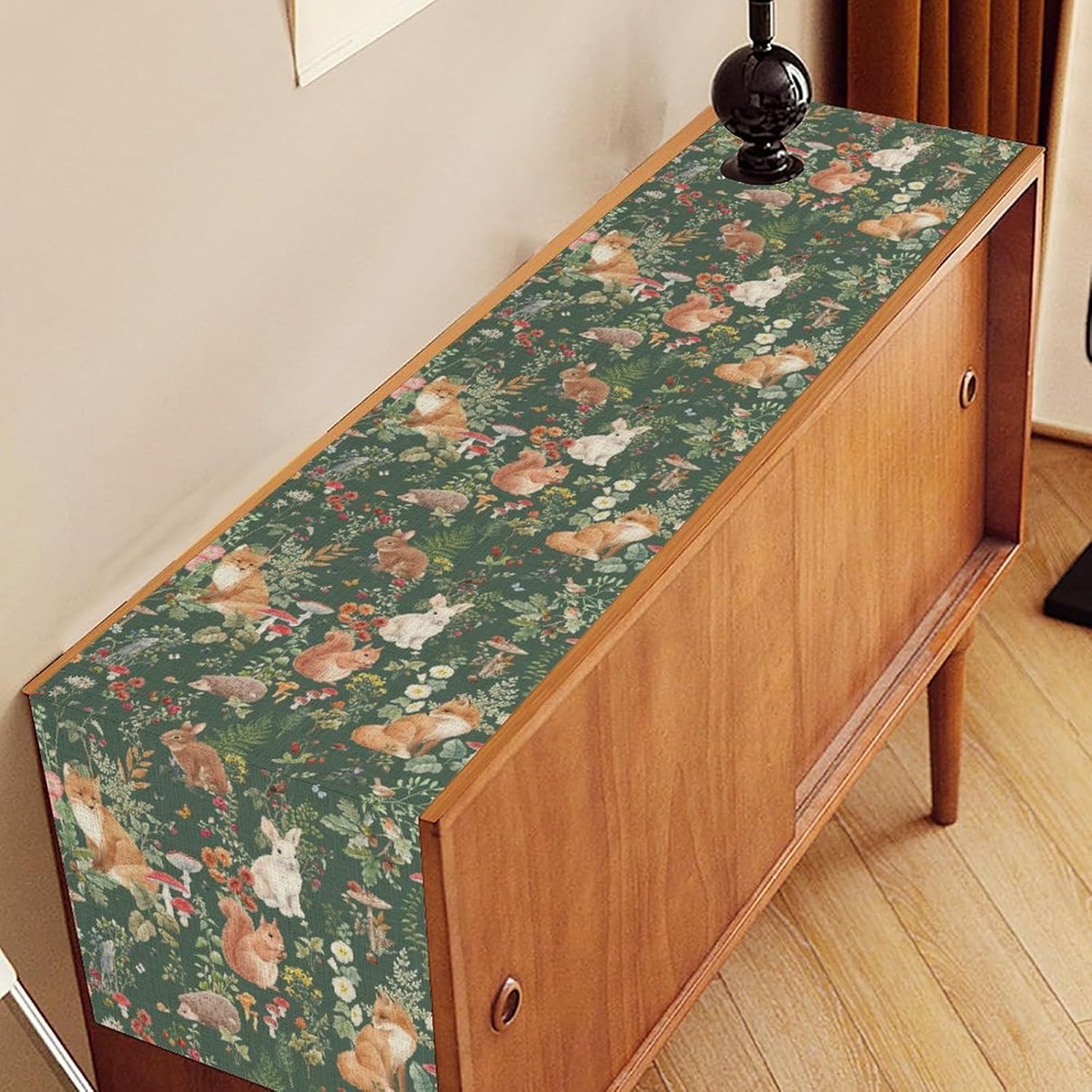 - Various Occasions: The cute table runner widely used in the kitchen, dining room, outdoor table, parties, birthday, or any other special occasion. Suitable for most rectangular table, round table and square table. The watercolor woodland table runners not only as dining table but also tea table, shoe cabinet, washing machine and TV stand, etc. It's also an ideal gift for Christmas, birthdays, weddings or parties as well.