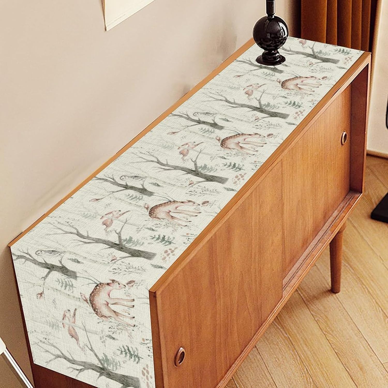 - Various Occasions: The cute table runner widely used in the kitchen, dining room, outdoor table, parties, birthday, or any other special occasion. Suitable for most rectangular table, round table and square table. The watercolor woodland table runners not only as dining table but also tea table, shoe cabinet, washing machine and TV stand, etc. It's also an ideal gift for Christmas, birthdays, weddings or parties as well.