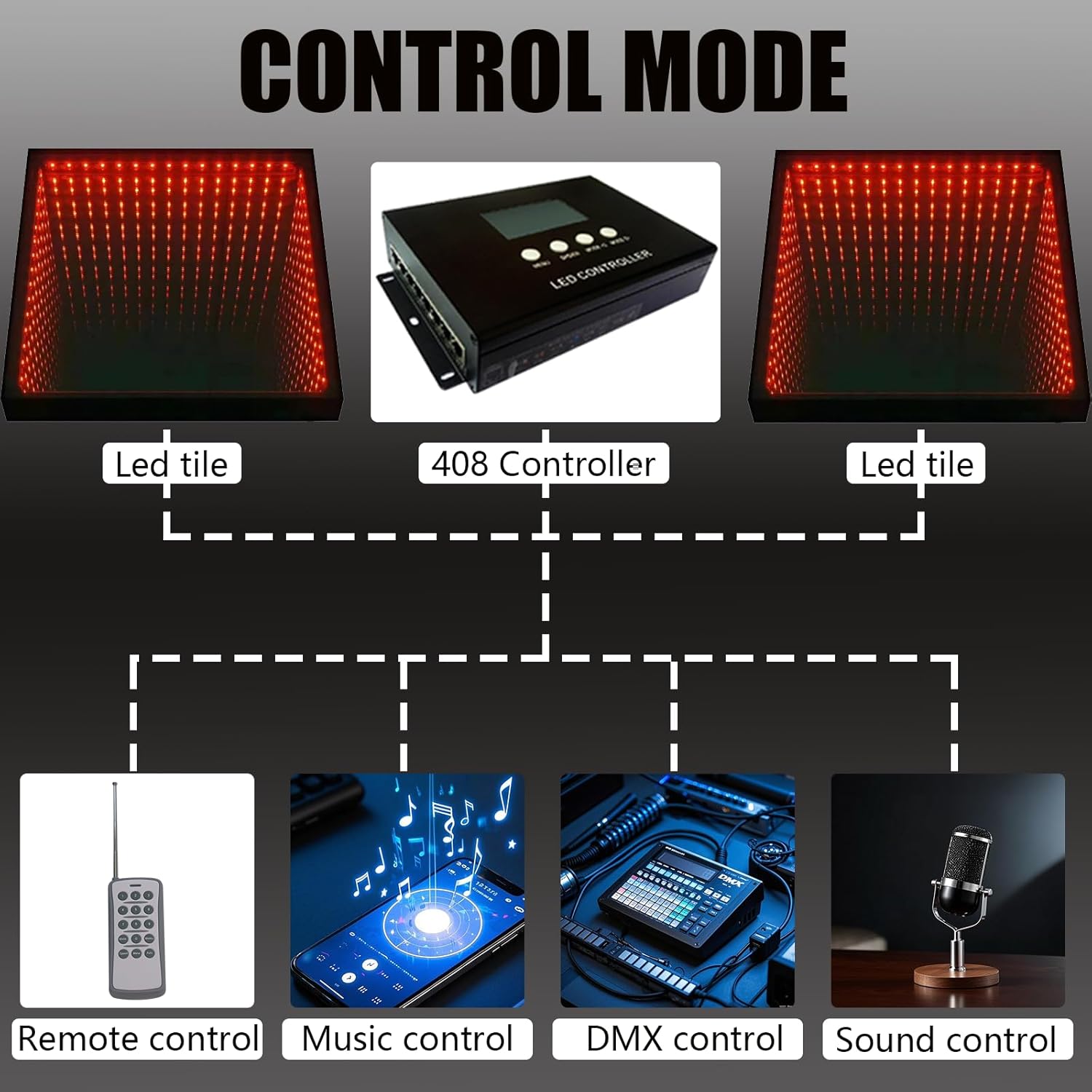 Dance Floor Stage Lights Tempered Glass Infinity Mirror Panel 3D Effect Led Dance Floor for Wedding Party Customizable (3D-Magnetic, Customize)