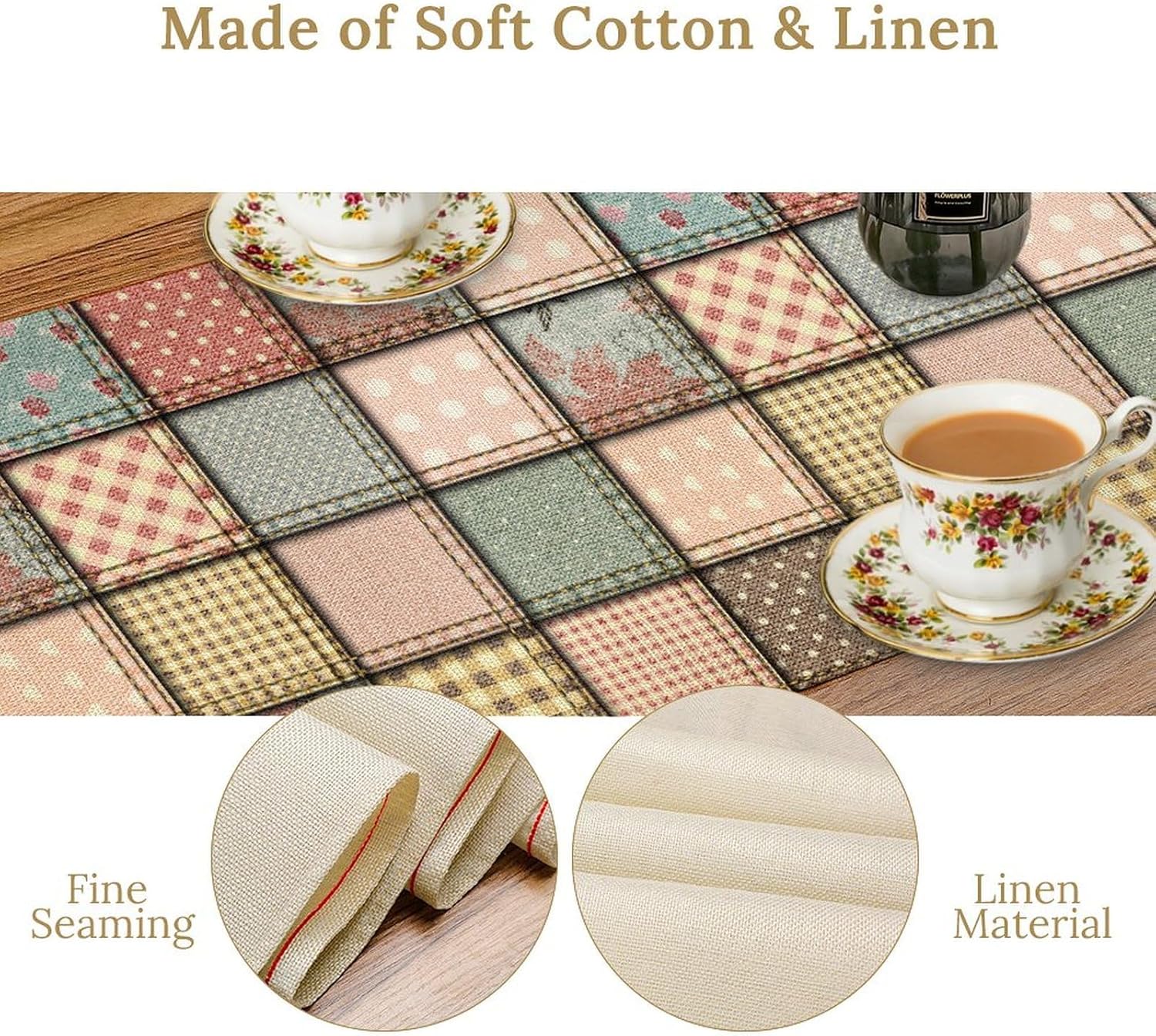 - Various Occasions: The cute table runner widely used in the kitchen, dining room, outdoor table, parties, birthday, or any other special occasion. Suitable for most rectangular table, round table and square table. The patchwork table runners not only as dining table but also tea table, shoe cabinet, washing machine and TV stand, etc. It's also an ideal gift for Christmas, birthdays, weddings or parties as well.
