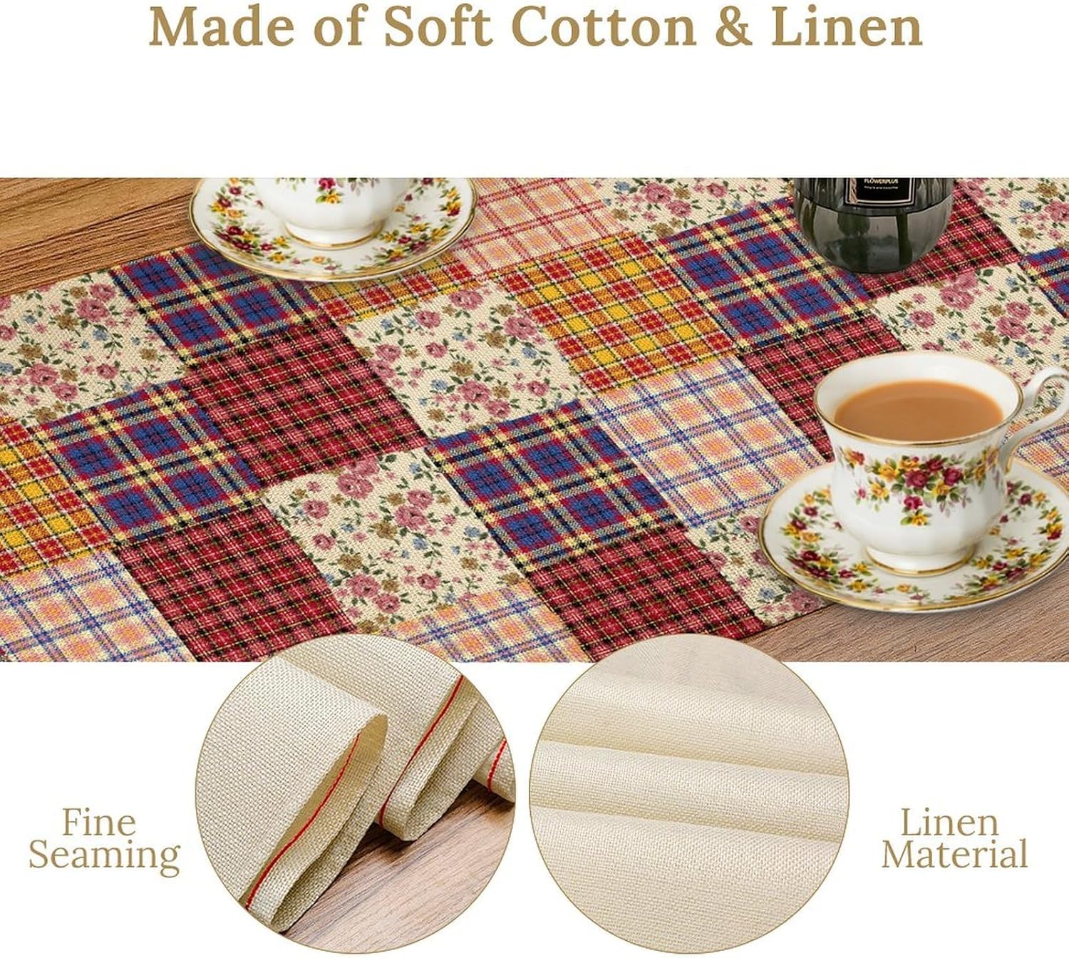 - Various Occasions: The cute table runner widely used in the kitchen, dining room, outdoor table, parties, birthday, or any other special occasion. Suitable for most rectangular table, round table and square table. The patchwork table runners not only as dining table but also tea table, shoe cabinet, washing machine and TV stand, etc. It's also an ideal gift for Christmas, birthdays, weddings or parties as well.