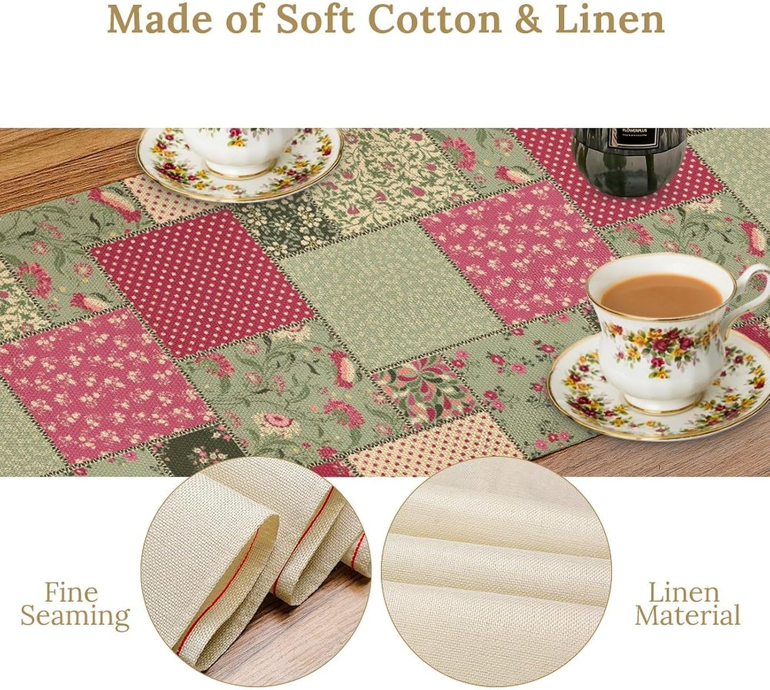 - Various Occasions: The cute table runner widely used in the kitchen, dining room, outdoor table, parties, birthday, or any other special occasion. Suitable for most rectangular table, round table and square table. The patchwork table runners not only as dining table but also tea table, shoe cabinet, washing machine and TV stand, etc. It's also an ideal gift for Christmas, birthdays, weddings or parties as well.