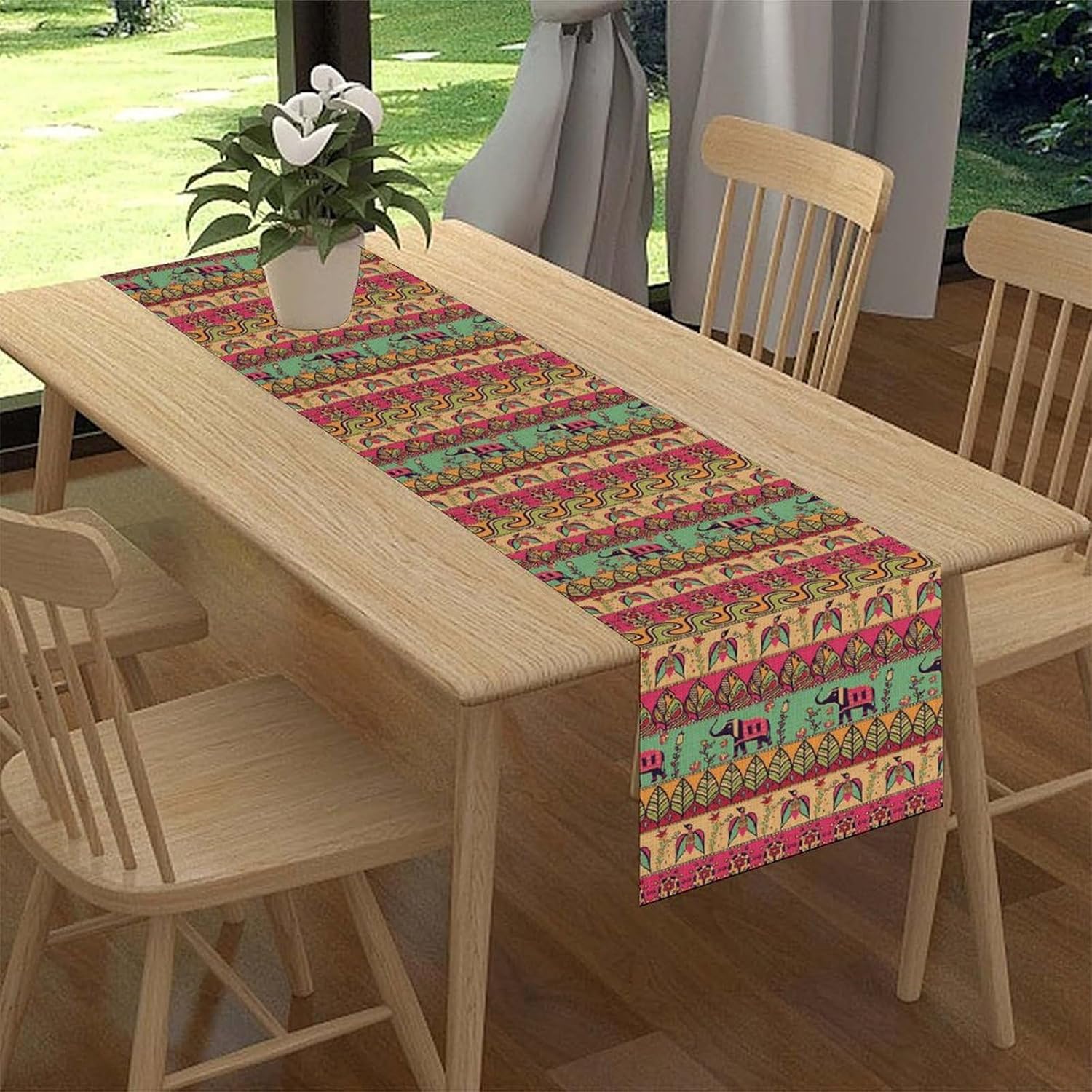 Boho Table Runner, Indian Bohemian Elephant Mandala Paisley Floral Hippie Art Print Table Center Decor for Home Kitchen Dining Patio Holiday Party Indoor Outdoor Table Decorations, 13"x90" Inch