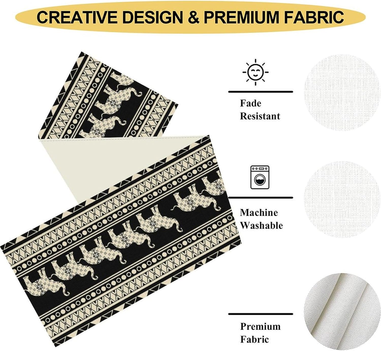 Ethnic Table Runner, Rustic Farmhouse Boho Geometric Elephant Aztec Tribal Print Black Table Center Decor for Home Kitchen Dining Patio Holiday Party Indoor Outdoor Table Decorations, 13"x36" Inch