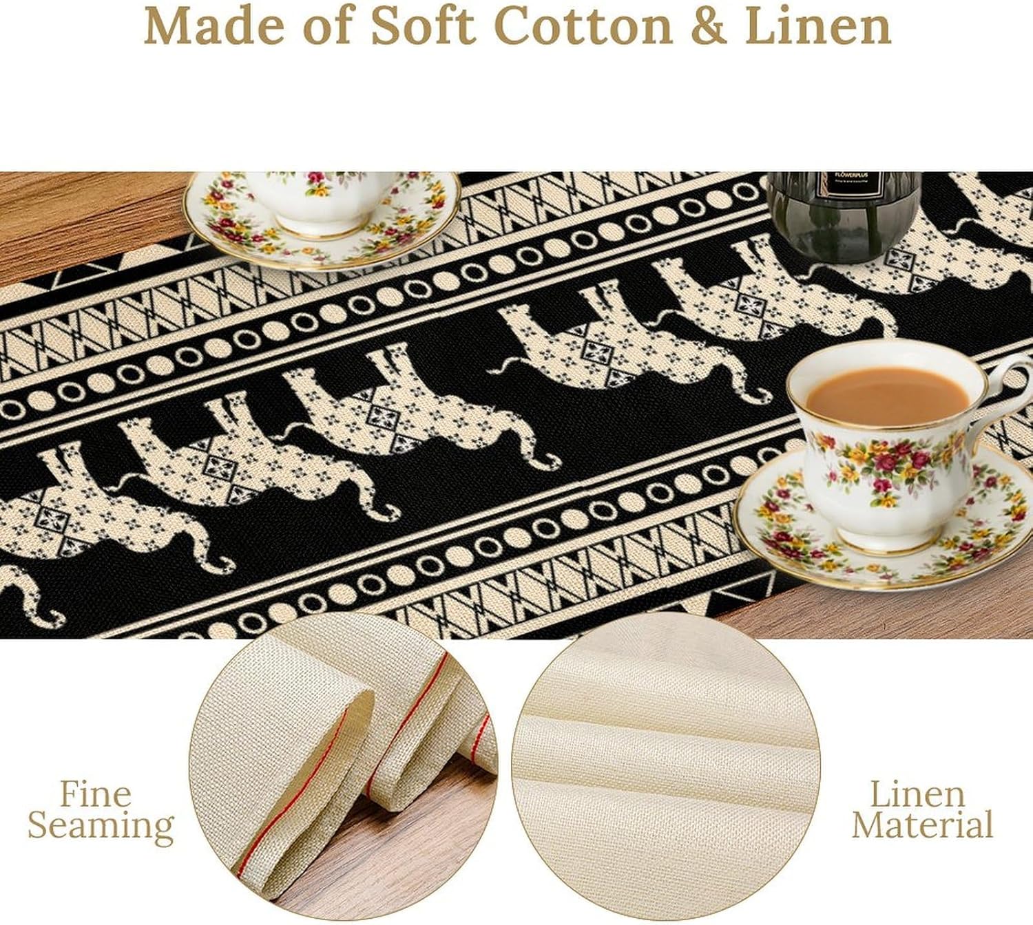 Ethnic Table Runner, Rustic Farmhouse Boho Geometric Elephant Aztec Tribal Print Black Table Center Decor for Home Kitchen Dining Patio Holiday Party Indoor Outdoor Table Decorations, 13"x108" Inch