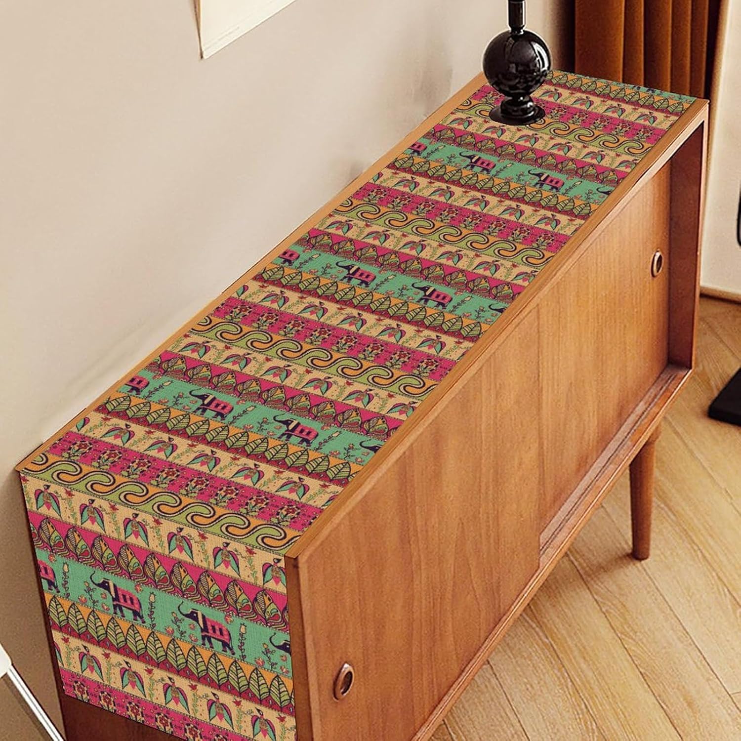 - Various Occasions: The ethnic table runner widely used in the kitchen, dining room, outdoor table, parties, birthday, or any other special occasion. Suitable for most rectangular table, round table and square table. The bohemian table runners not only as dining table but also tea table, shoe cabinet, washing machine and TV stand, etc. It's also an ideal gift for Christmas, birthdays, weddings or parties as well.