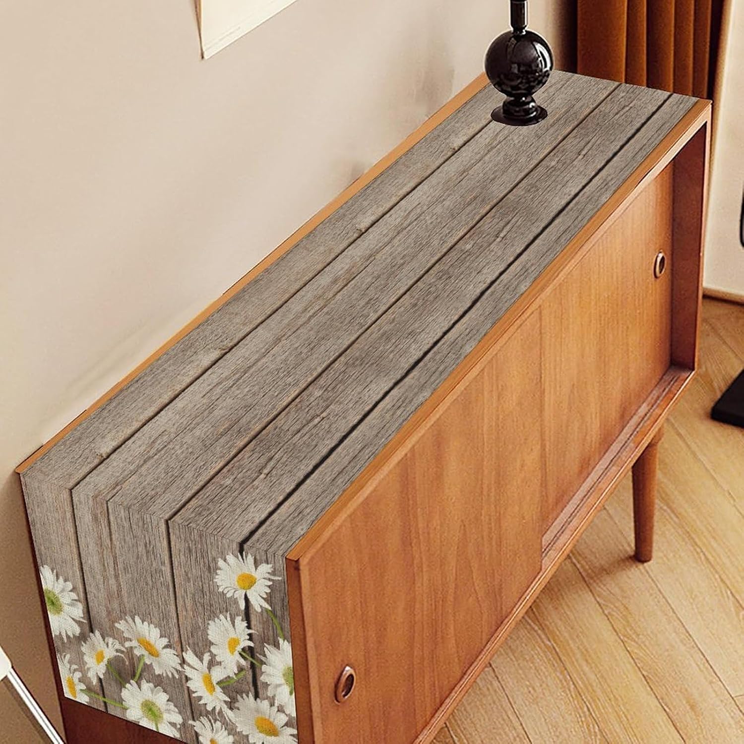 - Various Occasions: The rustic table runner widely used in the kitchen, dining room, outdoor table, parties, birthday, or any other special occasion. Suitable for most rectangular table, round table and square table. The daisy floral table runners not only as dining table but also tea table, shoe cabinet, washing machine and TV stand, etc. It's also an ideal gift for Christmas, birthdays, weddings or parties as well.