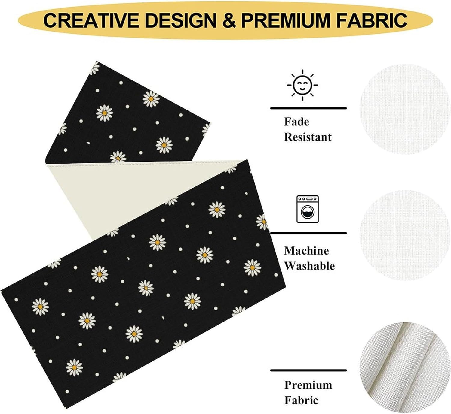 - Various Occasions: The rustic table runner widely used in the kitchen, dining room, outdoor table, parties, birthday, or any other special occasion. Suitable for most rectangular table, round table and square table. The daisy floral table runners not only as dining table but also tea table, shoe cabinet, washing machine and TV stand, etc. It's also an ideal gift for Christmas, birthdays, weddings or parties as well.