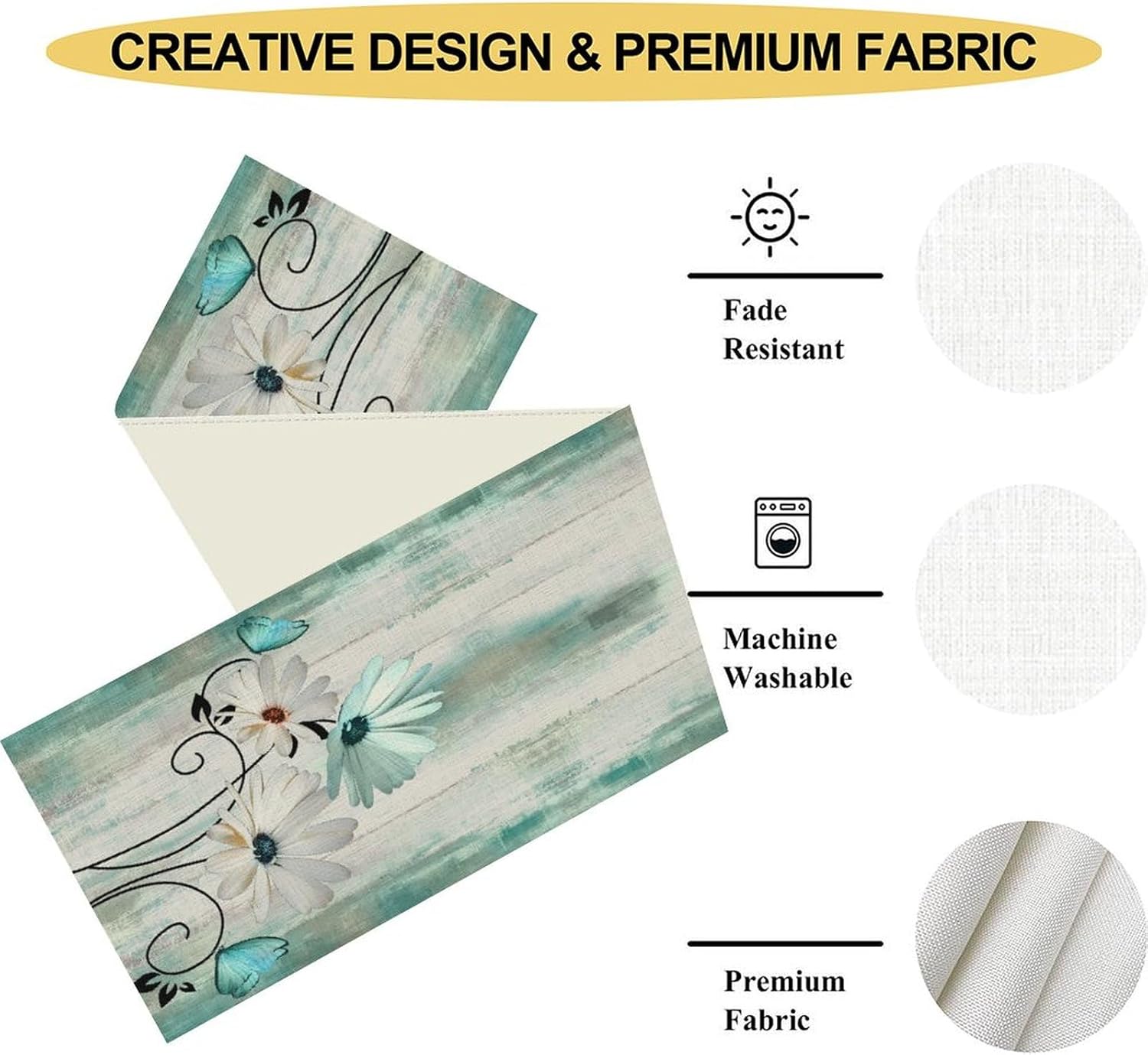 - Various Occasions: The rustic table runner widely used in the kitchen, dining room, outdoor table, parties, birthday, or any other special occasion. Suitable for most rectangular table, round table and square table. The daisy floral table runners not only as dining table but also tea table, shoe cabinet, washing machine and TV stand, etc. It's also an ideal gift for Christmas, birthdays, weddings or parties as well.