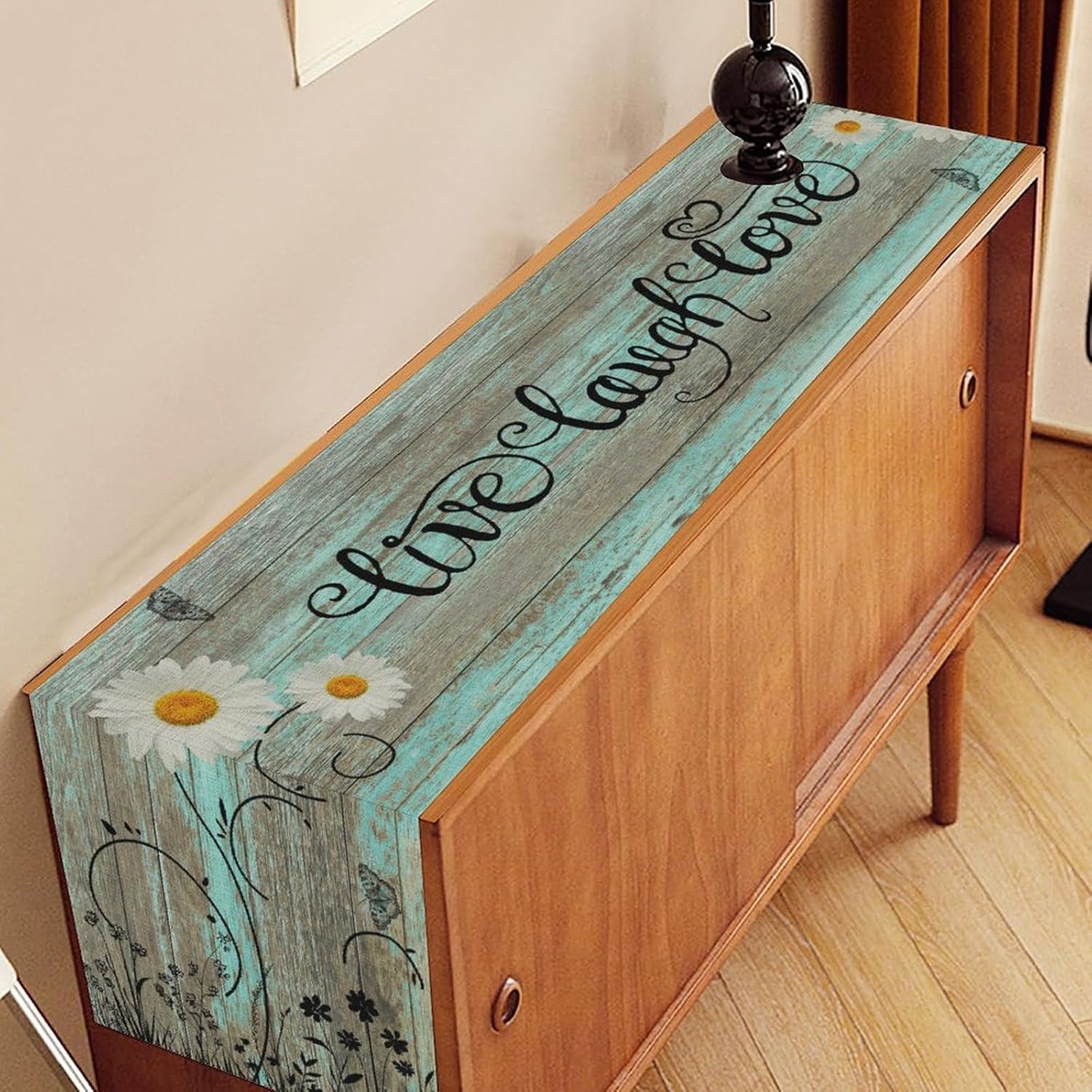 - Various Occasions: The rustic table runner widely used in the kitchen, dining room, outdoor table, parties, birthday, or any other special occasion. Suitable for most rectangular table, round table and square table. The daisy floral table runners not only as dining table but also tea table, shoe cabinet, washing machine and TV stand, etc. It's also an ideal gift for Christmas, birthdays, weddings or parties as well.