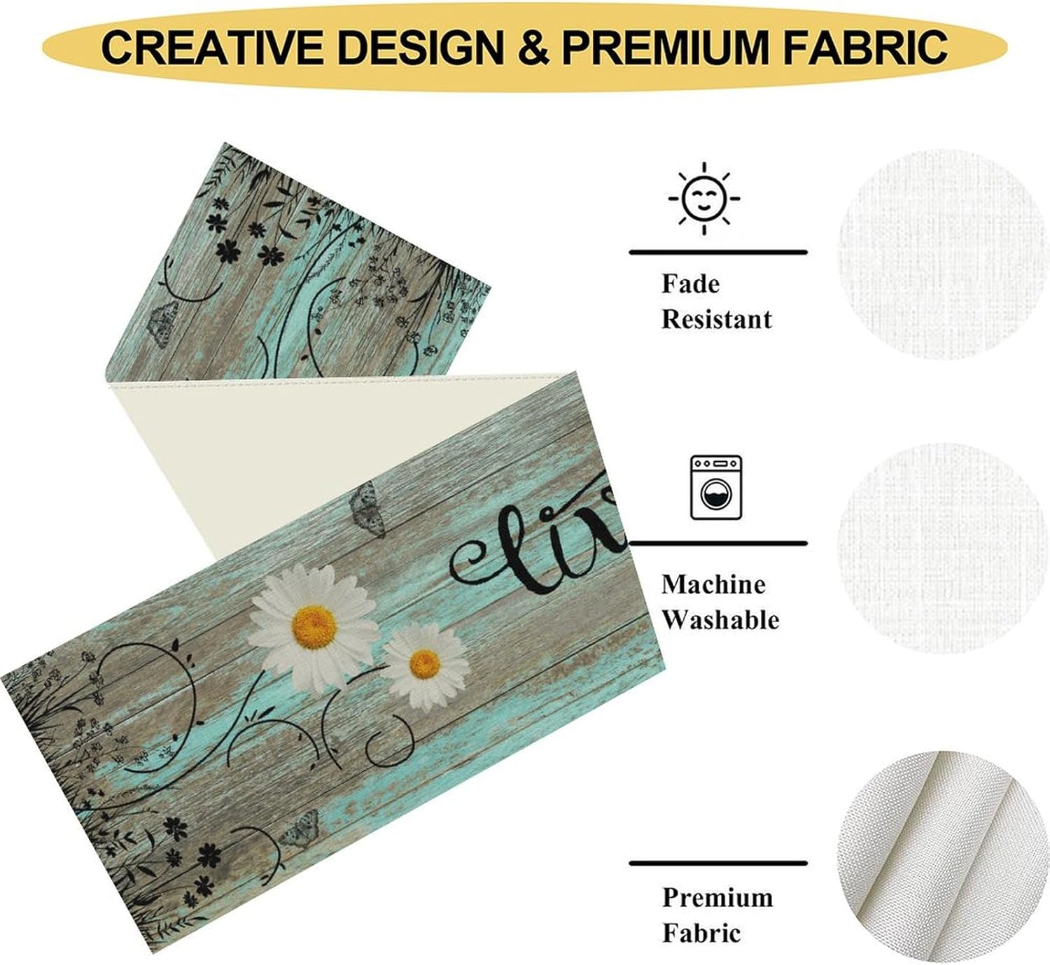 - Various Occasions: The rustic table runner widely used in the kitchen, dining room, outdoor table, parties, birthday, or any other special occasion. Suitable for most rectangular table, round table and square table. The daisy floral table runners not only as dining table but also tea table, shoe cabinet, washing machine and TV stand, etc. It's also an ideal gift for Christmas, birthdays, weddings or parties as well.