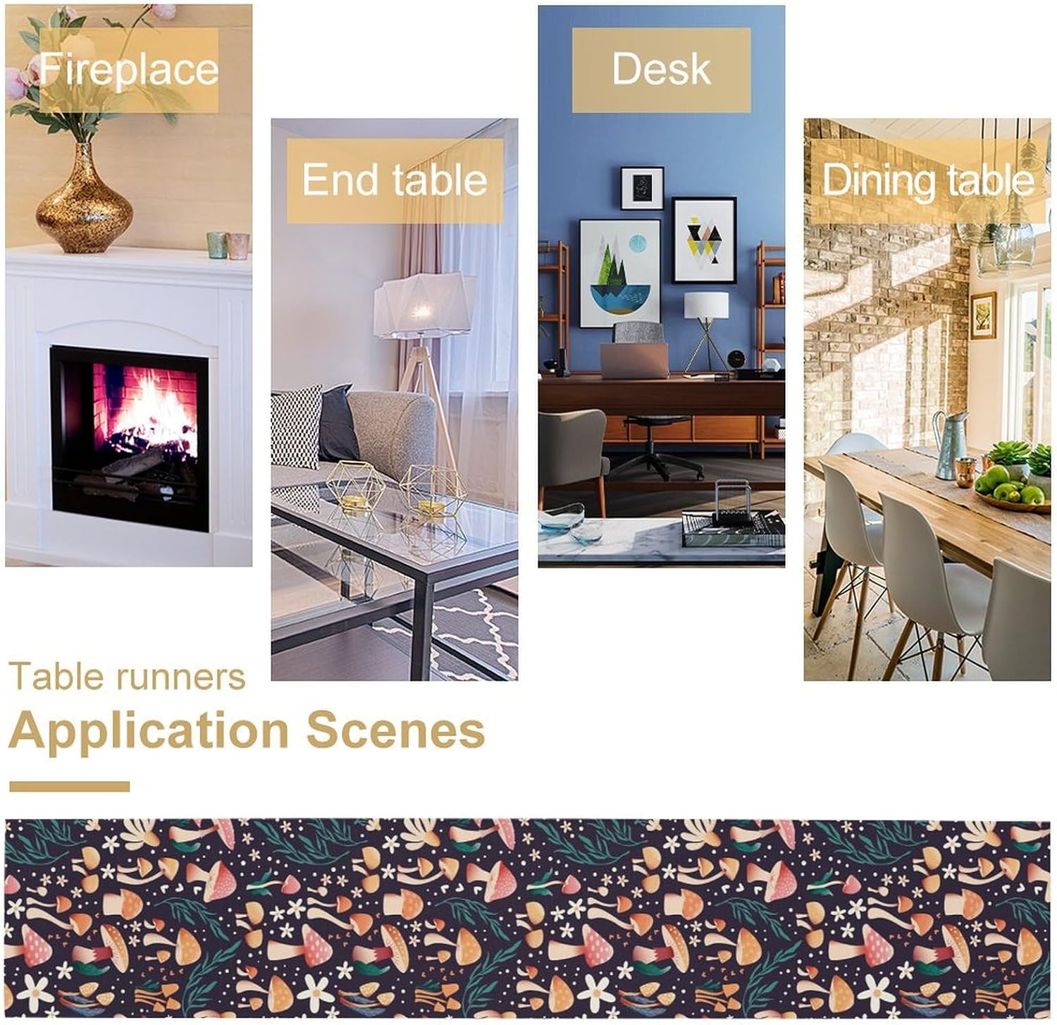Mushroom Table Runner,Retro Forest Plant Table Cloth Farmhouse Kitchen Dining Table Decoration for Home Party Decor 13x108 Inch