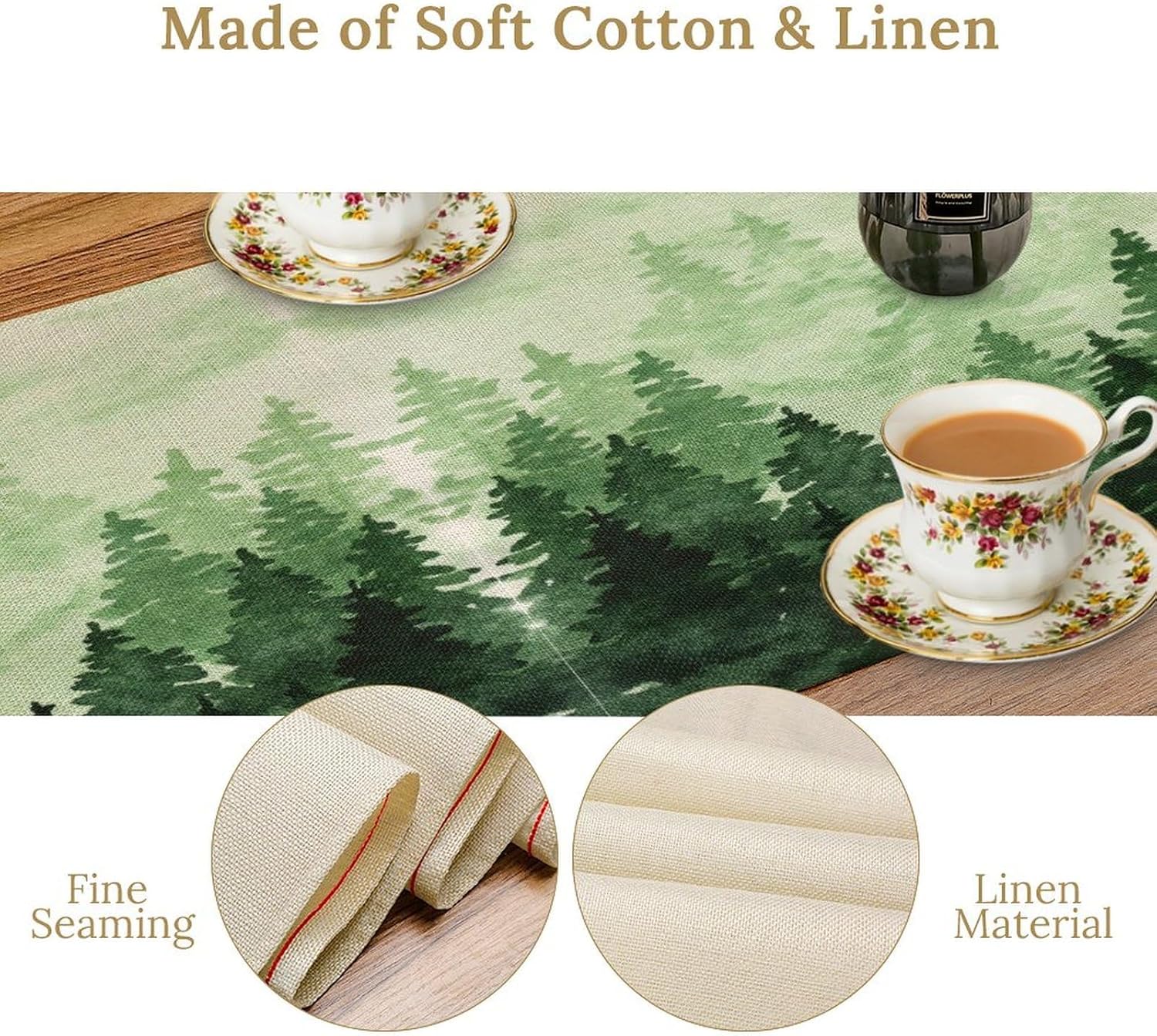 Foggy Forest Table Runner,Watercolor Wreen Misty Forest Landscape Table Runner for Kitchen Dining Table Home Party Decoration 13x90 Inch