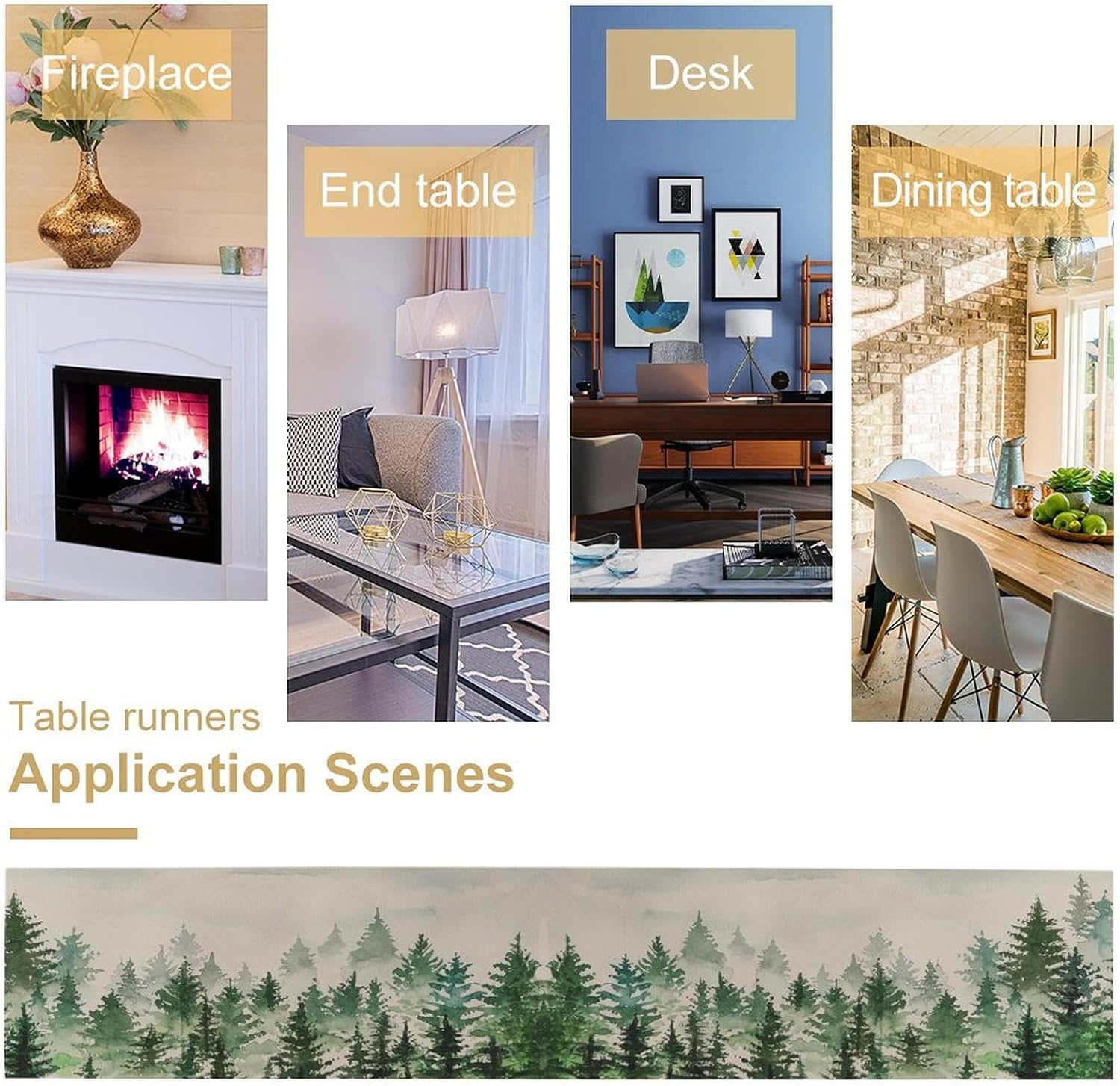 Foggy Forest Table Runner,Green Forest Natural Landscape Table Runner for Kitchen Dining Table Home Party Decoration 13x120 Inch