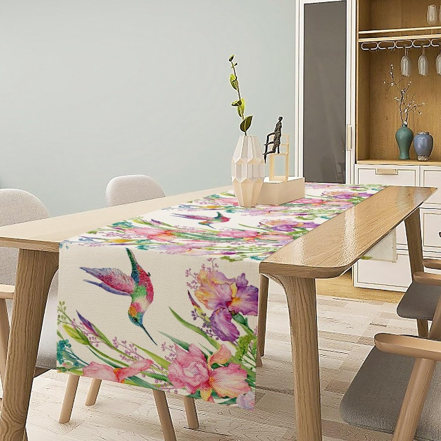Hummingbird Table Runner,Pink Floral Country Style Table Runner for Kitchen Dining Table Home Party Decoration 13x90 Inch