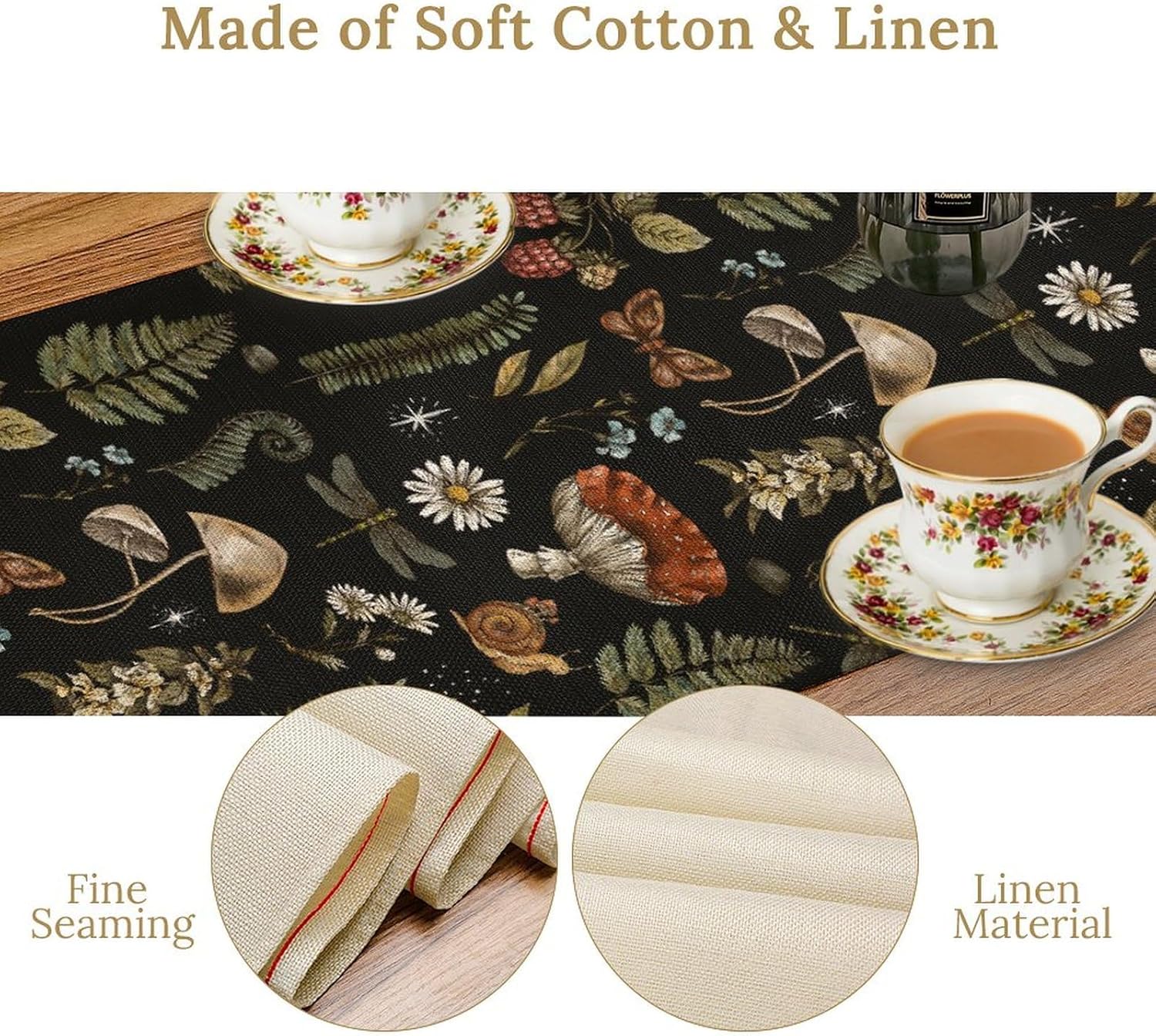 Mushroom Table Runner,Retro Forest Plant Table Runner for Kitchen Dining Table Home Party Decoration 13x120 Inch