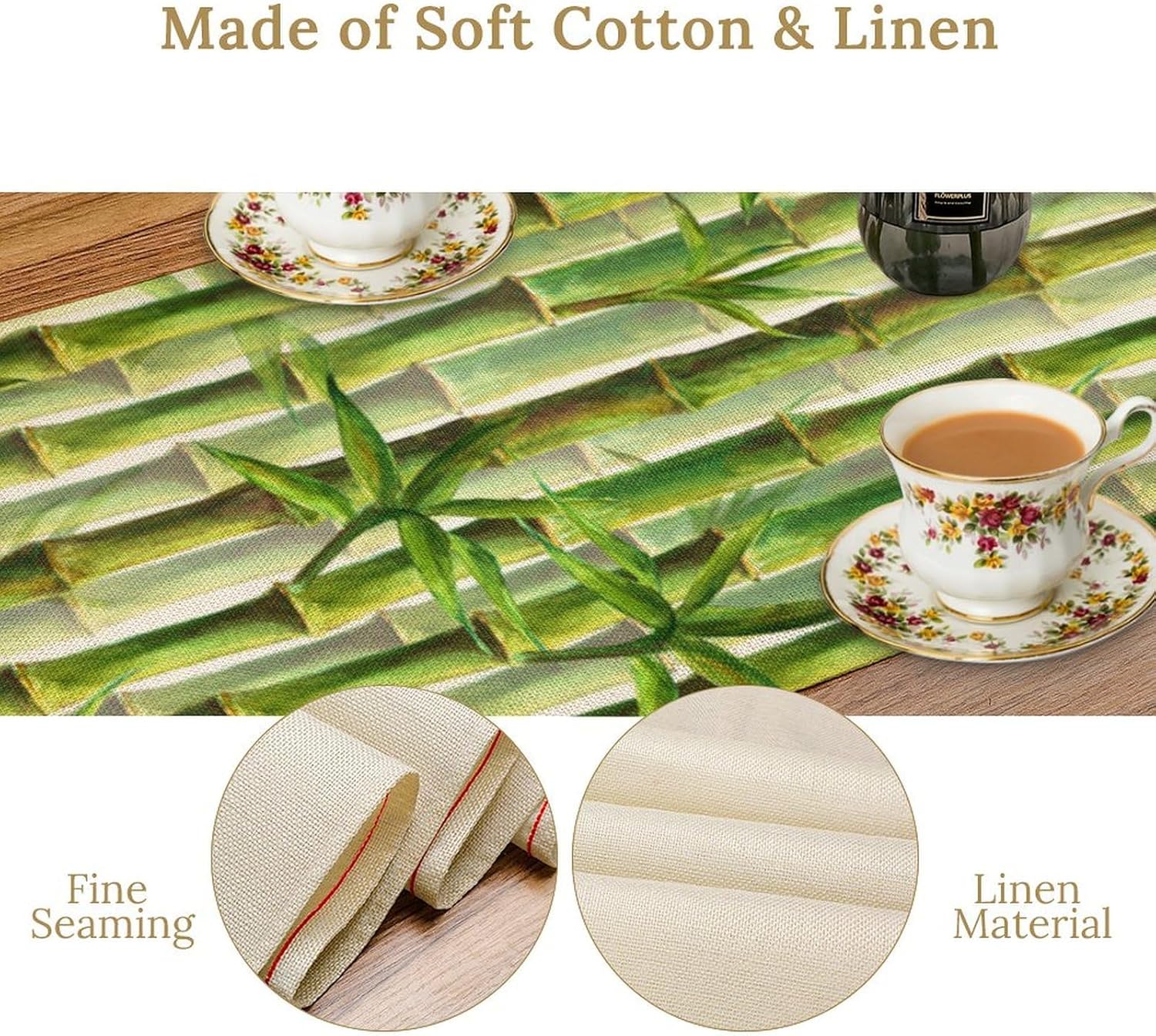 Bamboo Table Runner,Green Plant Print Table Runner for Kitchen Dining Table Home Party Decoration 13x108 Inch
