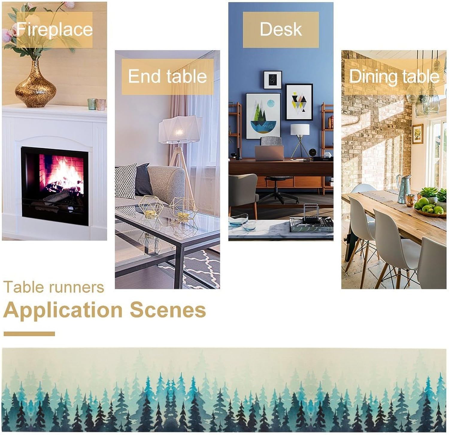 Misty Forest Table Runner,Foggy Blue Forest Landscape Table Runner for Kitchen Dining Table Home Party Decoration 13x36 Inch