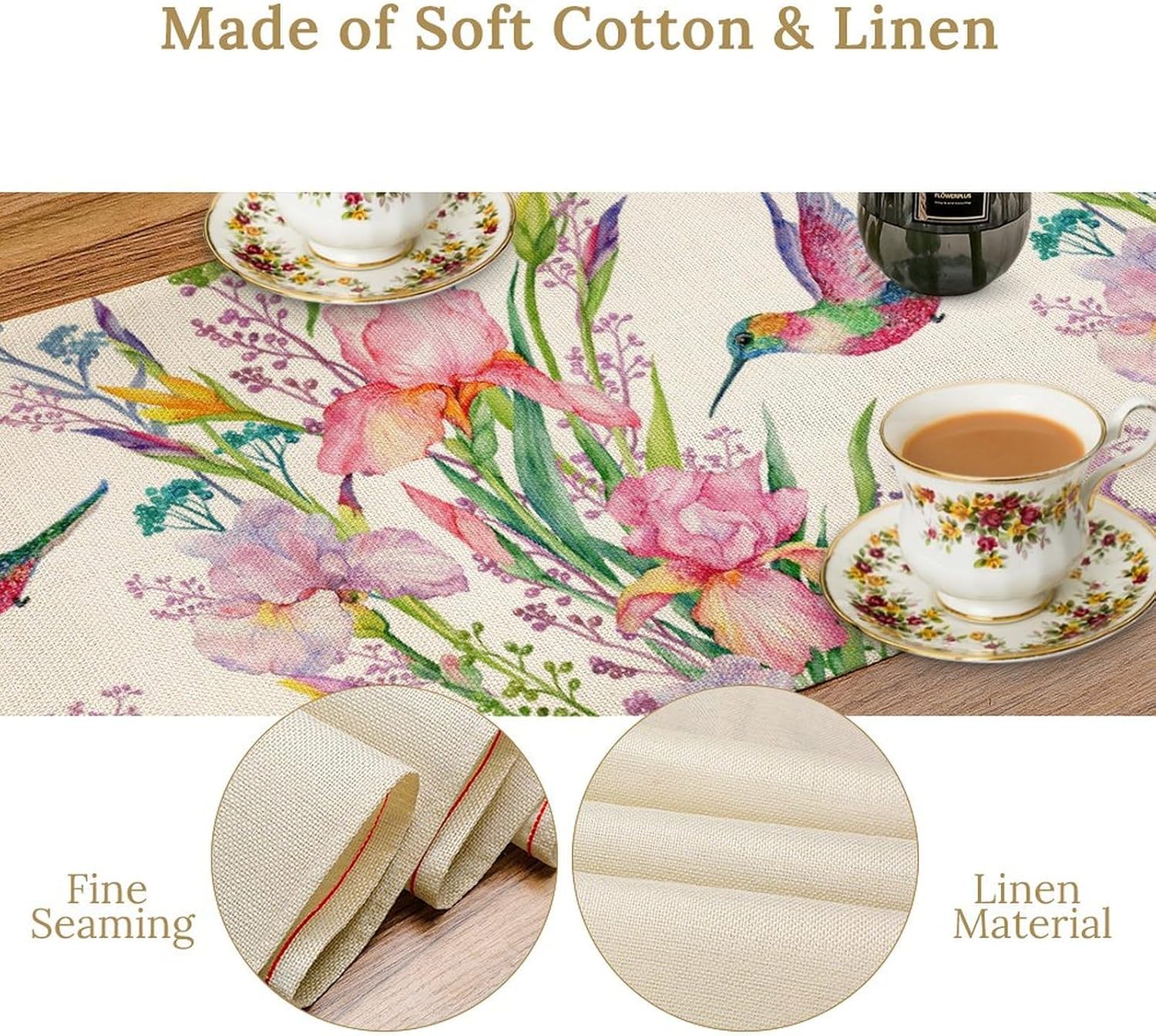 Hummingbird Table Runner,Pink Floral Country Style Table Runner for Kitchen Dining Table Home Party Decoration 13x108 Inch