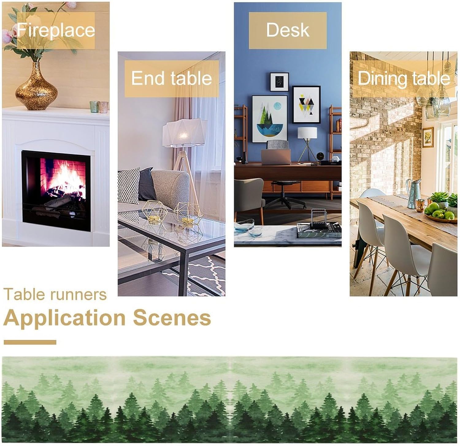 Foggy Forest Table Runner,Watercolor Wreen Misty Forest Landscape Table Runner for Kitchen Dining Table Home Party Decoration 13x60 Inch