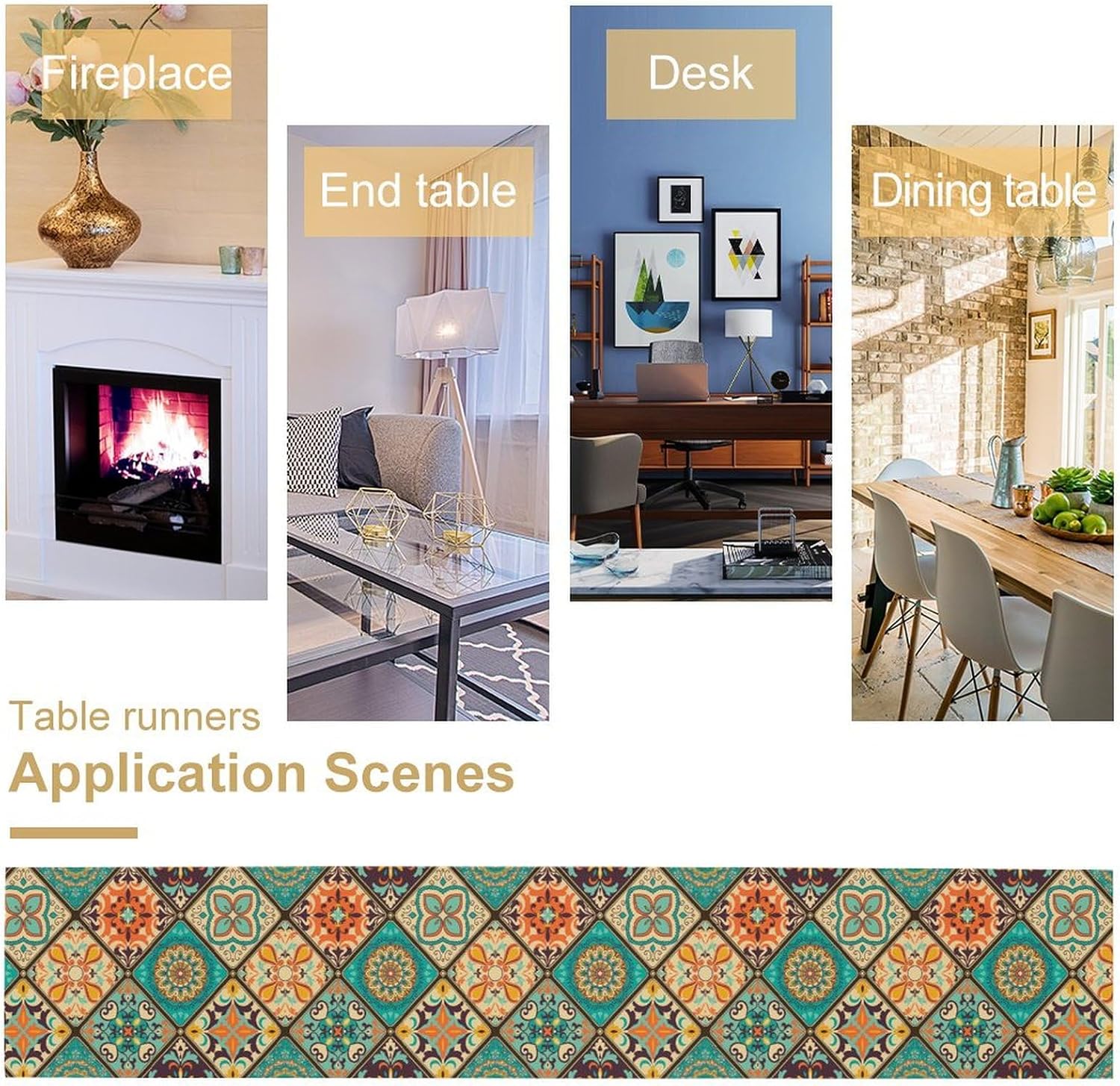 Boho Floral Table Runner,Vintage Bohemian Style Table Runner for Kitchen Dining Table Home Party Decoration 13x90 Inch