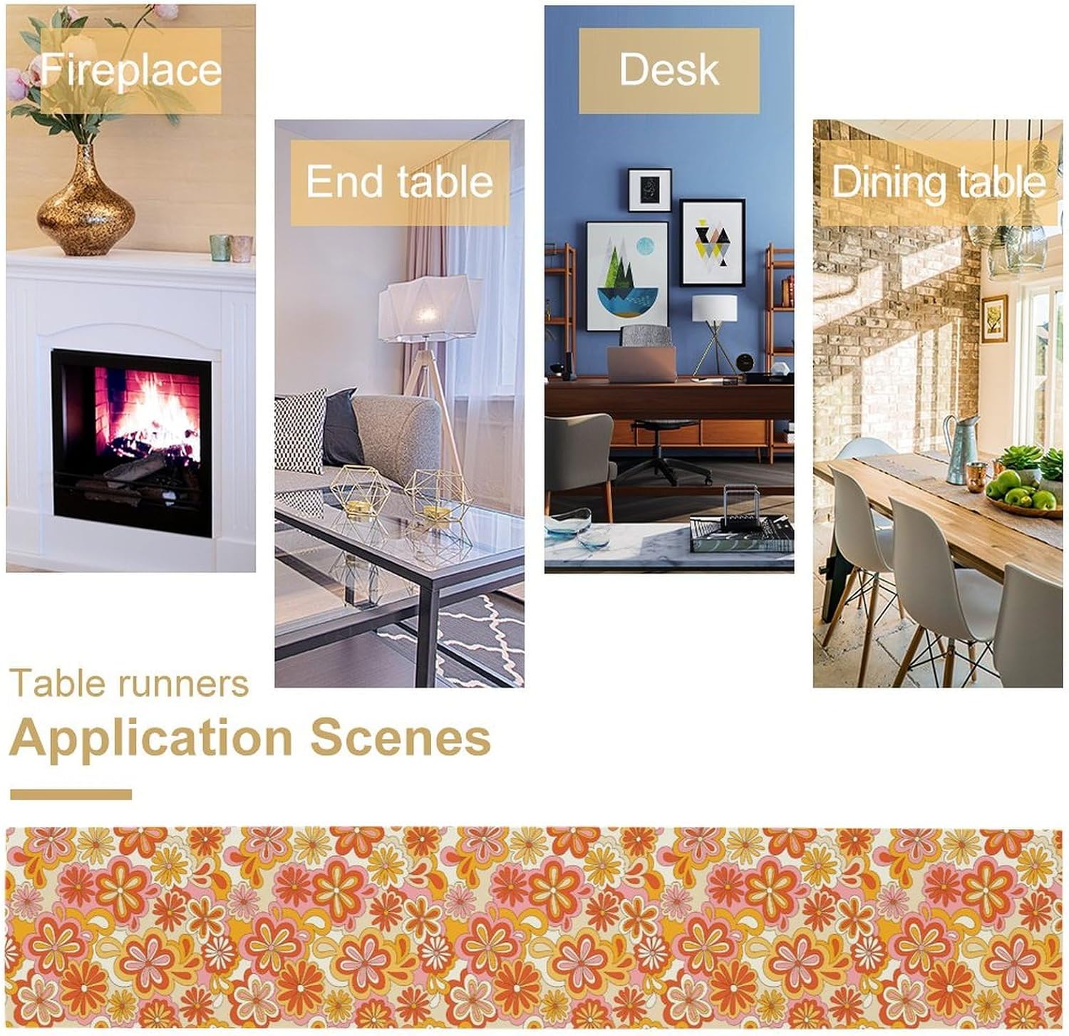 Vintage Floral Table Runner,70s Style Retro Daisies Flower Hippie Table Runner for Kitchen Dining Table Home Party Decoration 13x60 Inch