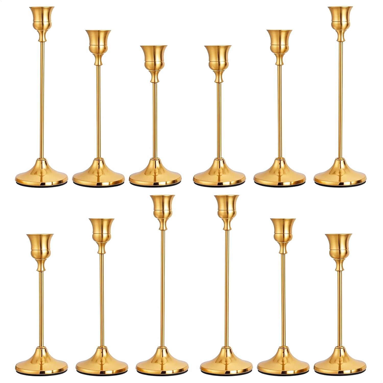 CHILL RECIPE Candlestick Holders Gold Taper Candle Holders, 12 PCS Candle Sticks Holders for Home Decor Table Centerpiece Wedding Housewarming Festival