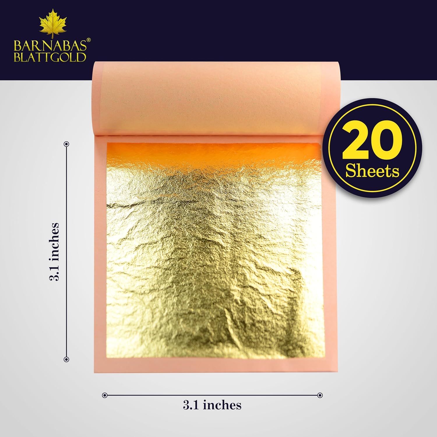Barnabas Blattgold Edible Gold Leaf 24K - Cake Decorations, Loose Gold Leaf Sheets for Cupcakes - 3.1 inches, Book of 20