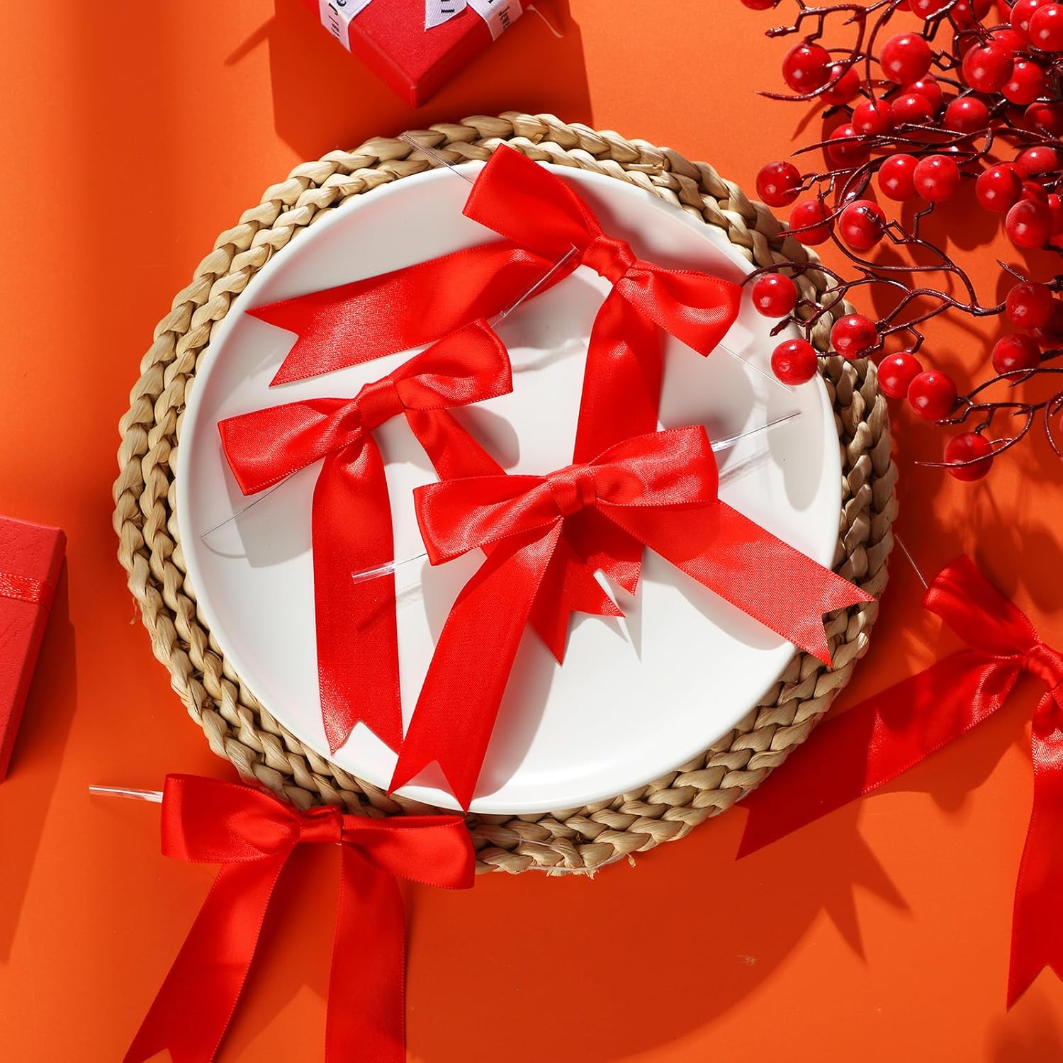 - Red Twist Tie Bows: our package includes 24 red ribbon bows and 24 twist ties; This set will easily meet your various needs for decoration or DIY projects; The dimensions of our bow are approximately 3.5 x 5 inches/ 9 x 13 cm, with a ribbon width of 1 inches/ 2.5 cm; The decent size is suitable for decorating gifts, packages, and other items; You can have fun with family and friend making eye catching decorative pieces by DIY