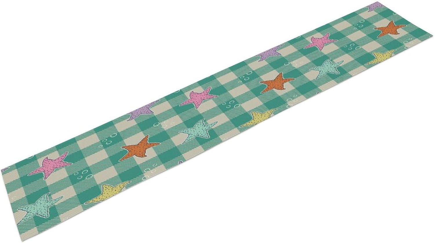 Starfish Plaid Table Flag Green Plaid and Marine Life Starfish Kitchen Table Flag Suitable for Birthday Party Restaurant Decoration Outdoor Picnic 13 * 60 Inch