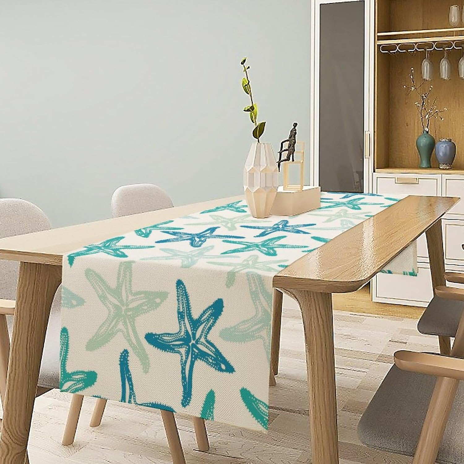 Starfish Plaid Table Flag Green Plaid and Marine Life Starfish Kitchen Table Flag Suitable for Birthday Party Restaurant Decoration Outdoor Picnic 13 * 70 Inch