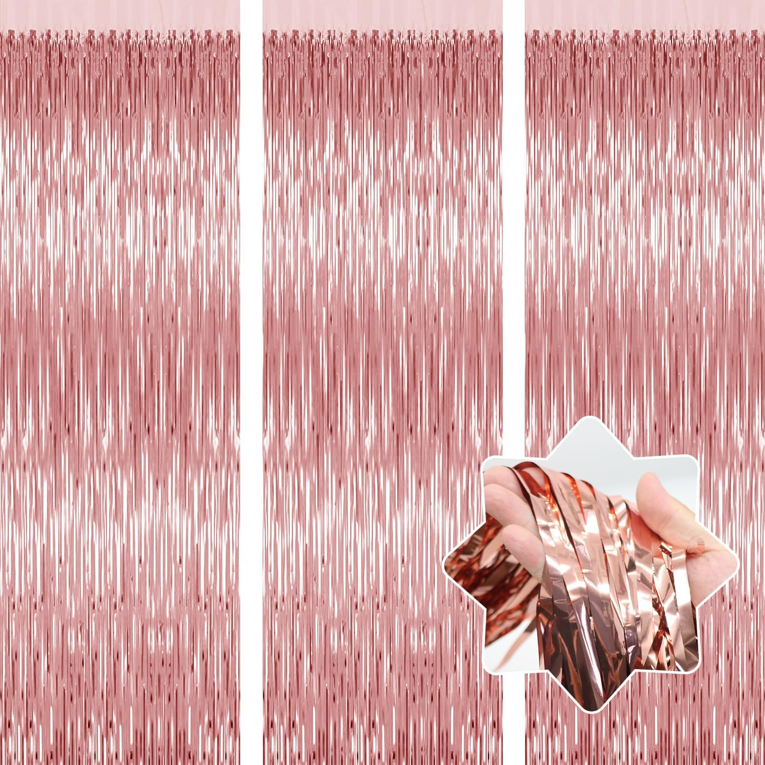 3 Pack Rose Gold Backdrop Birthday Decorations Foil Curtain Backdrop Bachelorette Party Decorations Rose Gold Party Decor Streamers Groovy Birthday Party Decorations