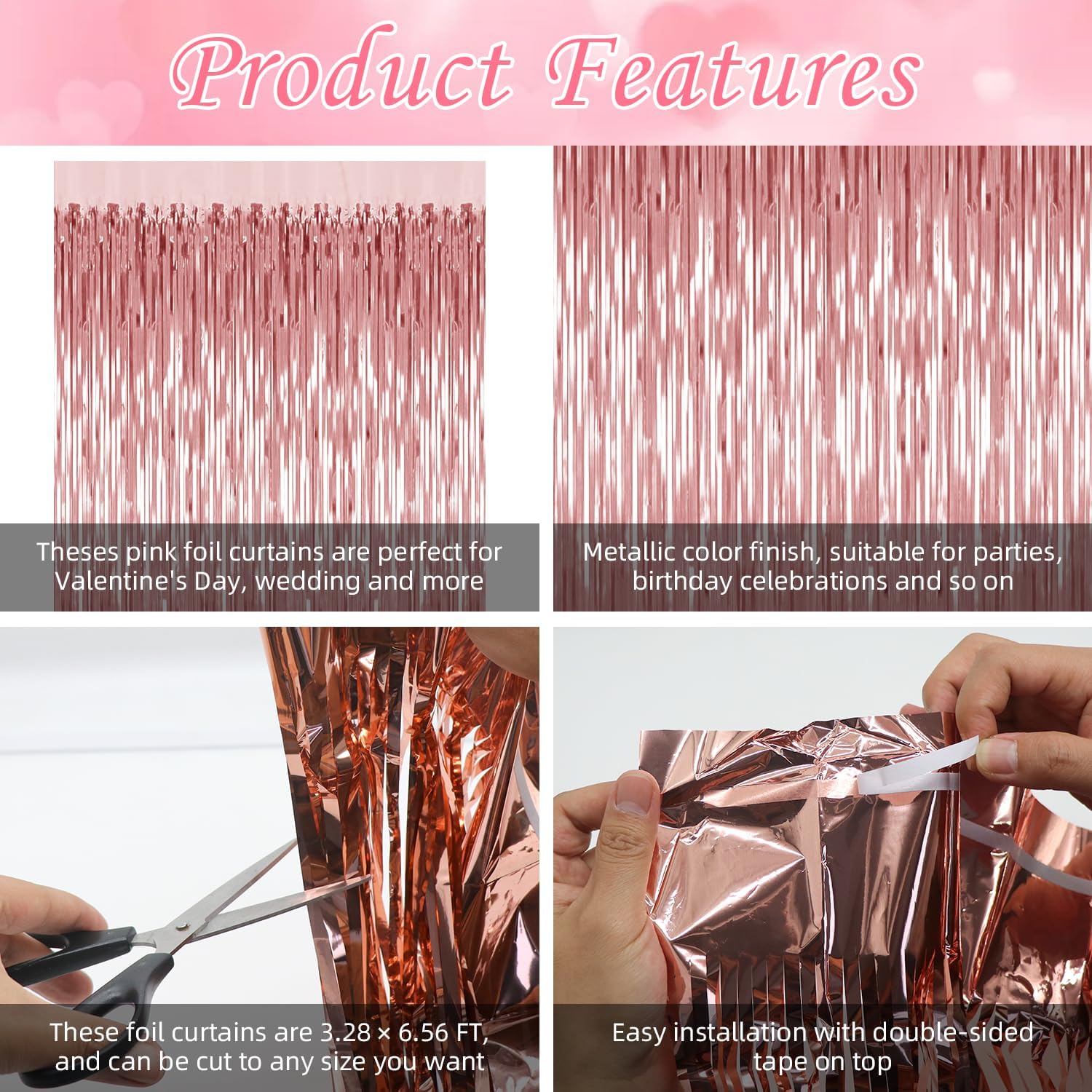 - Rose Gold Birthday Backdrop:3 packs of foil fringe curtains, the size of the foil curtain is 3.28 ft x 6.56 ft.It's long enough to fit any occasion. Please do not stick the foil curtain on uneven or stained walls to prevent it from falling off.