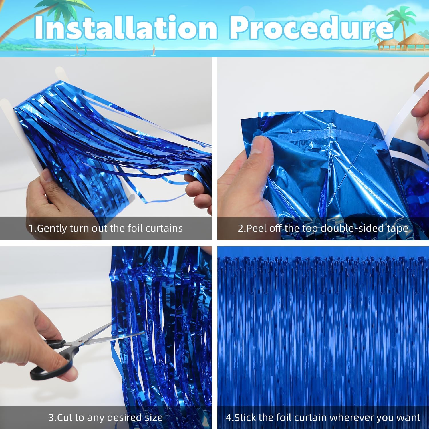- Easy To Assemble: The royal blue party decorations come with double-sided adhesive tape, easy to use, just tear off the back of the adhesive tape, then paste this blue streamers backdrop curtains on the top of wall, window, table, or as door fringe decoration to light up your ocean door decorations. Also you can hang these blue party favors to decorate as navy, door decorations hanging, blue door streamers, ocean decorations or as waterfall party decorations. It will create your party memorable.
