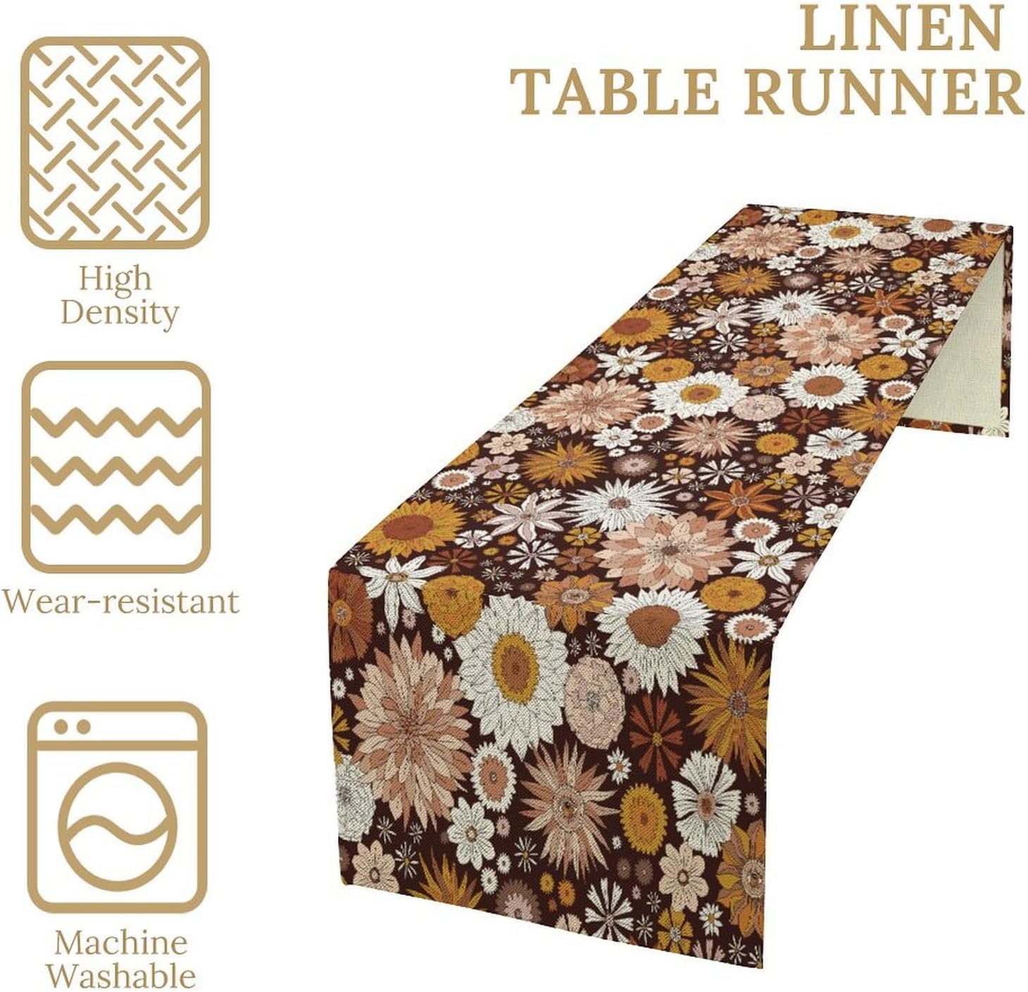 Boho Floral Table Runner, Vintage Country Farmhouse Daisy Flowers Modern Kitchen Dining Room Decoration for Indoor and Outdoor Wedding Party Banquet Table Runner 13x60 Inch