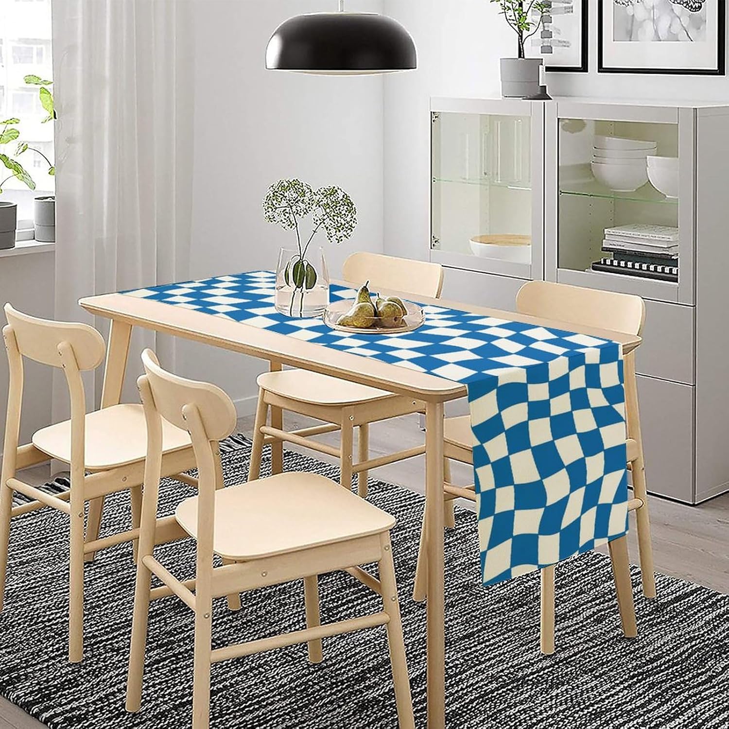 Table Flag Retro Plaid 60s70s Blue Plaid Table Flag Kitchen Restaurant Decoration Suitable for Indoor and Outdoor Festival Home Wedding Party Table Flag 13x36