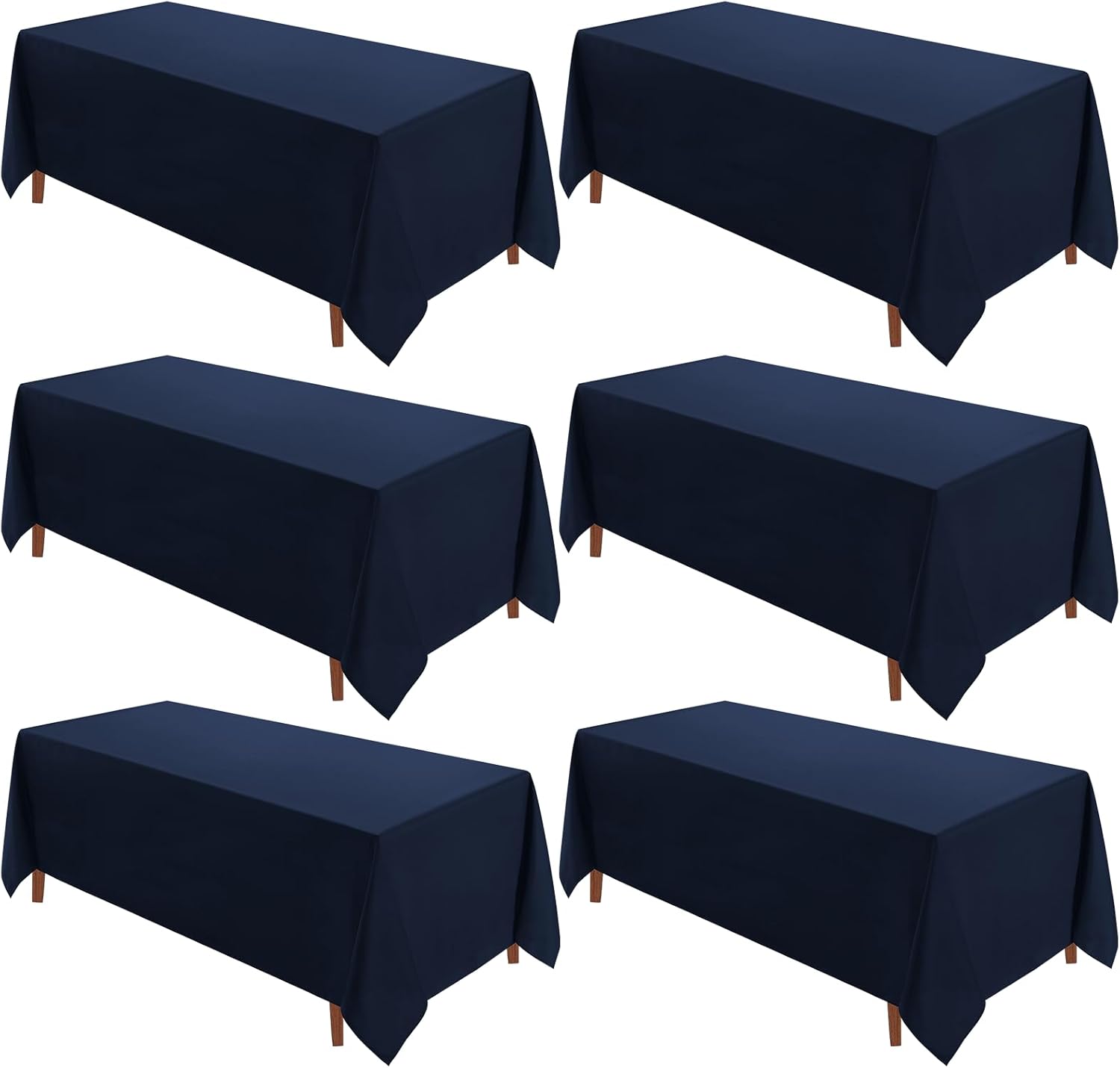 VidaFete Tablecloth 6 Pack 90 * 132inch Rectangle Table Cloth Polyester, Stain Wrinkle Resistant, Rectangular Polyester Table Cover for Kitchen Dinning Party Wedding Buffet Decoration(Navy Blue)
