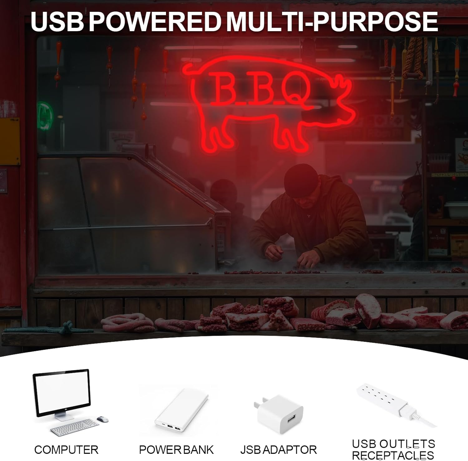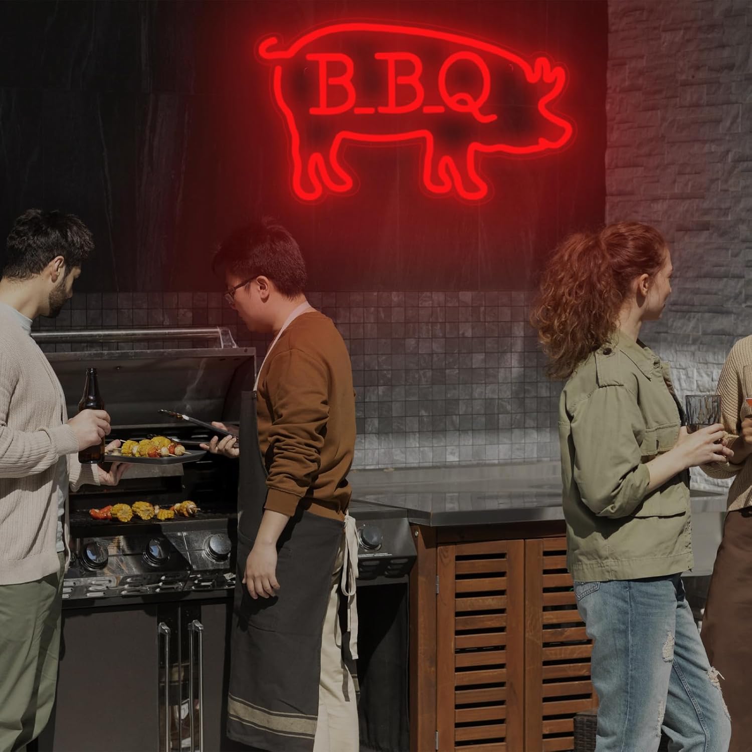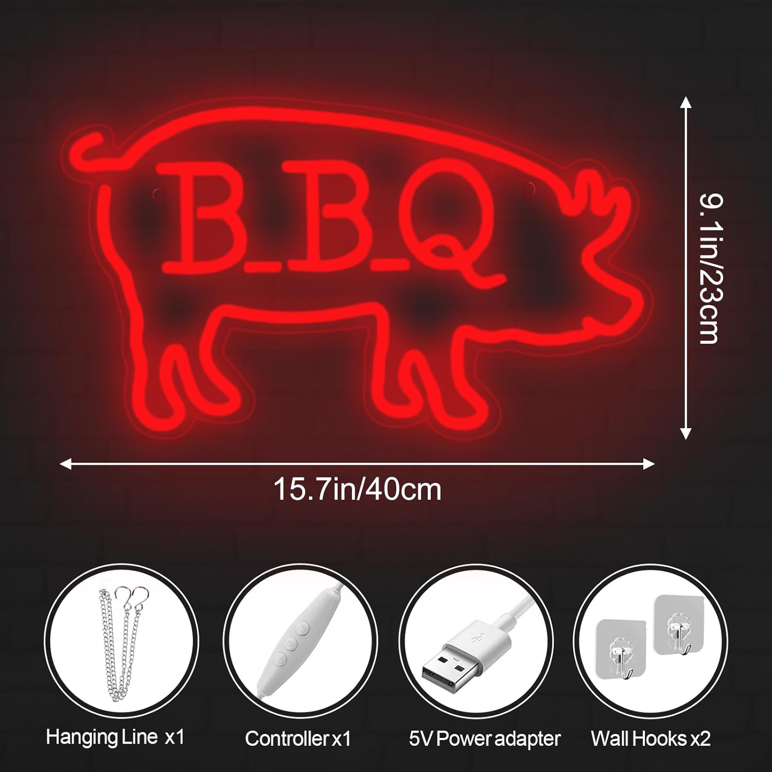 - What you get: BBQ pig neon sign x1, hanging chain x1, wall hooks x2. Every LED light undergoes rigorous quality checks before it ships. If you have any problem with our neon light, please feel free to contact us. We will try our best to serve you
