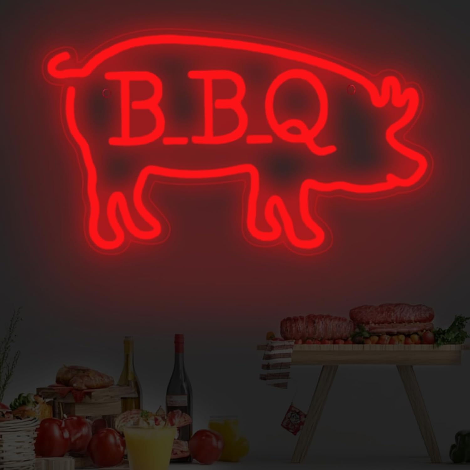 BBQ Pigs LED Neon Sign, Cute Pig LED Light for BBQ Restaraunt Frontstore Decoration, Versatile Wall Decor for Home, Bar, Party, 15.7"x9.1"