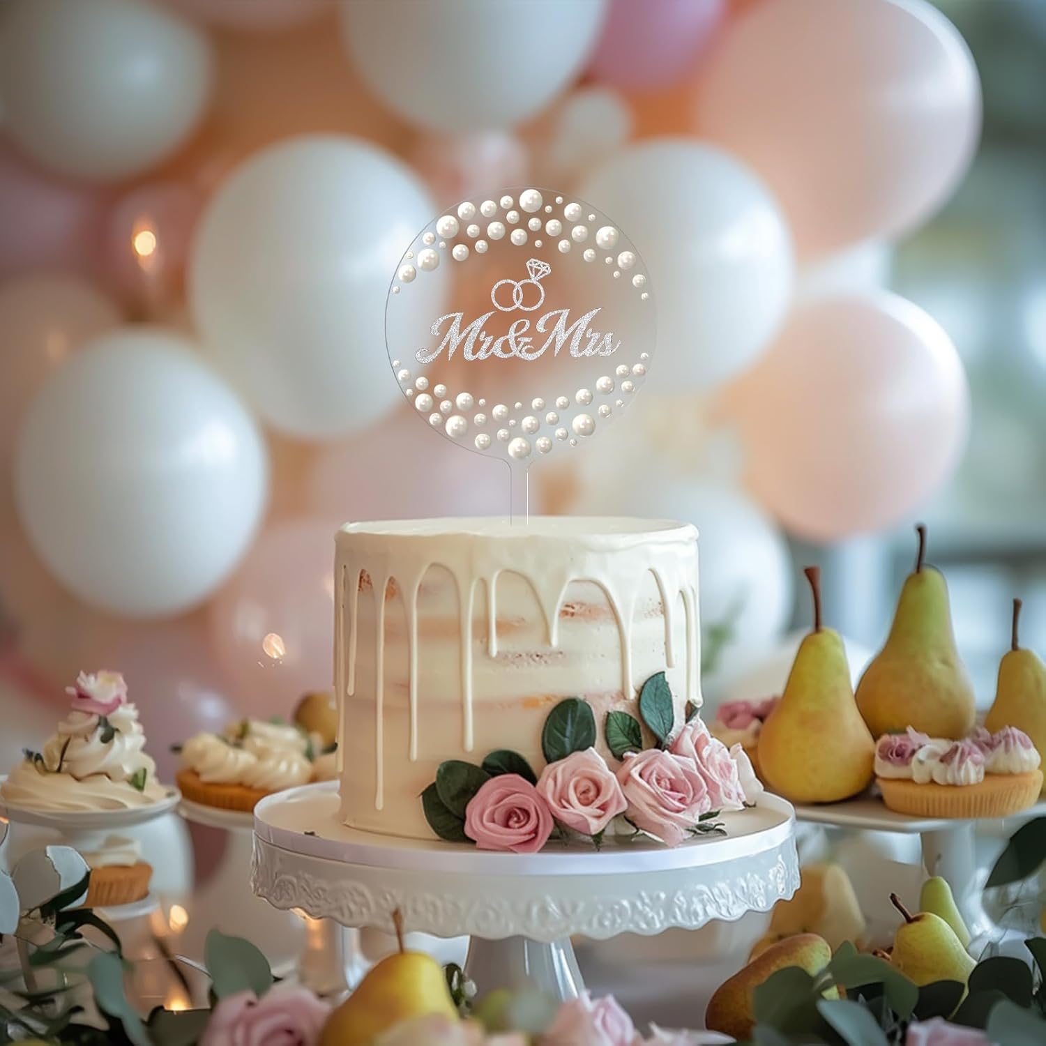 - 【Perfect Size & Premium Materials】: Dimensions 20.5CM*13.3CM/8IN*5IN, crafted from high-transparency acrylic, adorned with shimmering faux diamonds and pearls. The lightweight yet sturdy design ensures effortless placement on cakes of various sizes. Ideal for "wedding cake toppers" and "mr and mrs cake topper" styles.