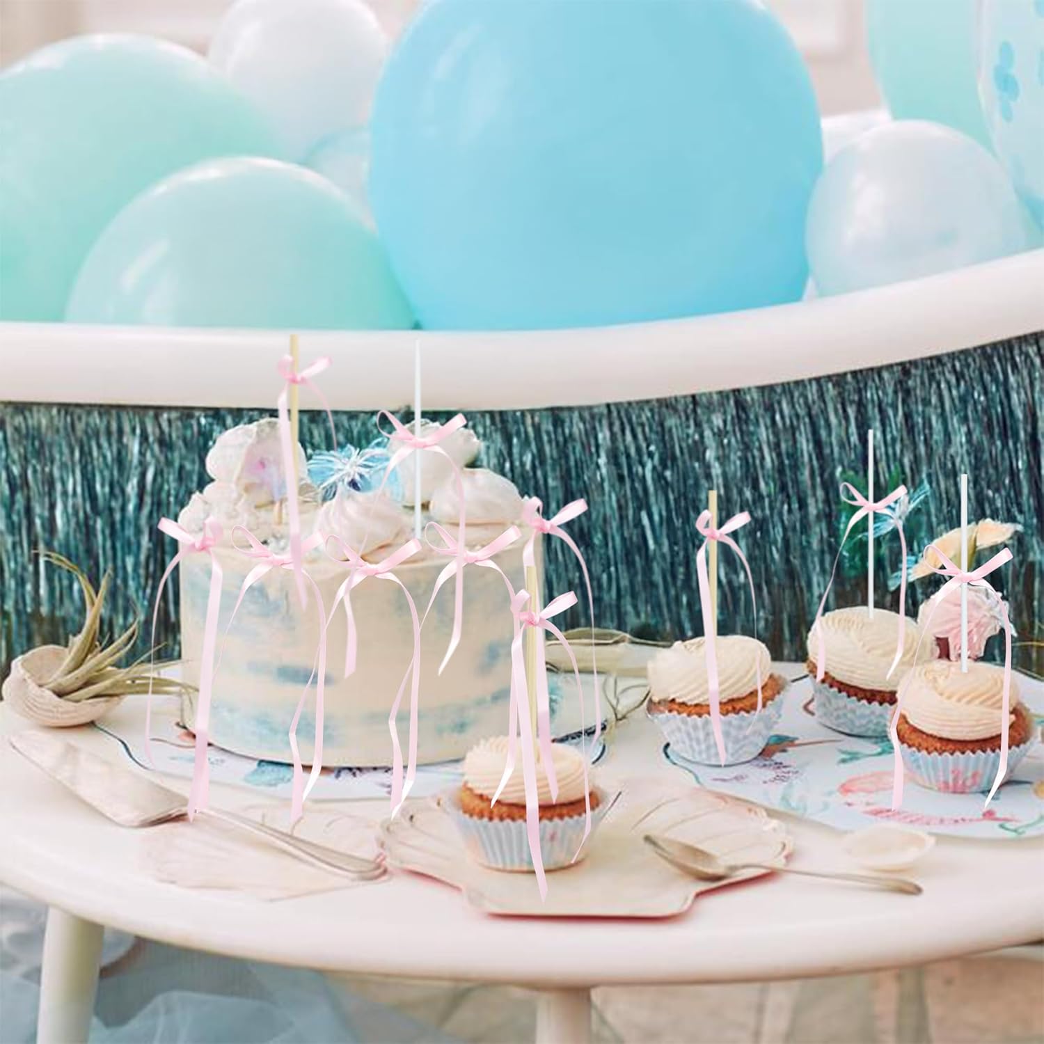 Ephlyn 30Pcs Bow Cupcake Toppers Valentine's Bowknot Ribbons Coquette Bow High Footed Cup Balloon Wall Party Decorations Cake Dessert Picks Birthday Wedding Party Supplies Pink