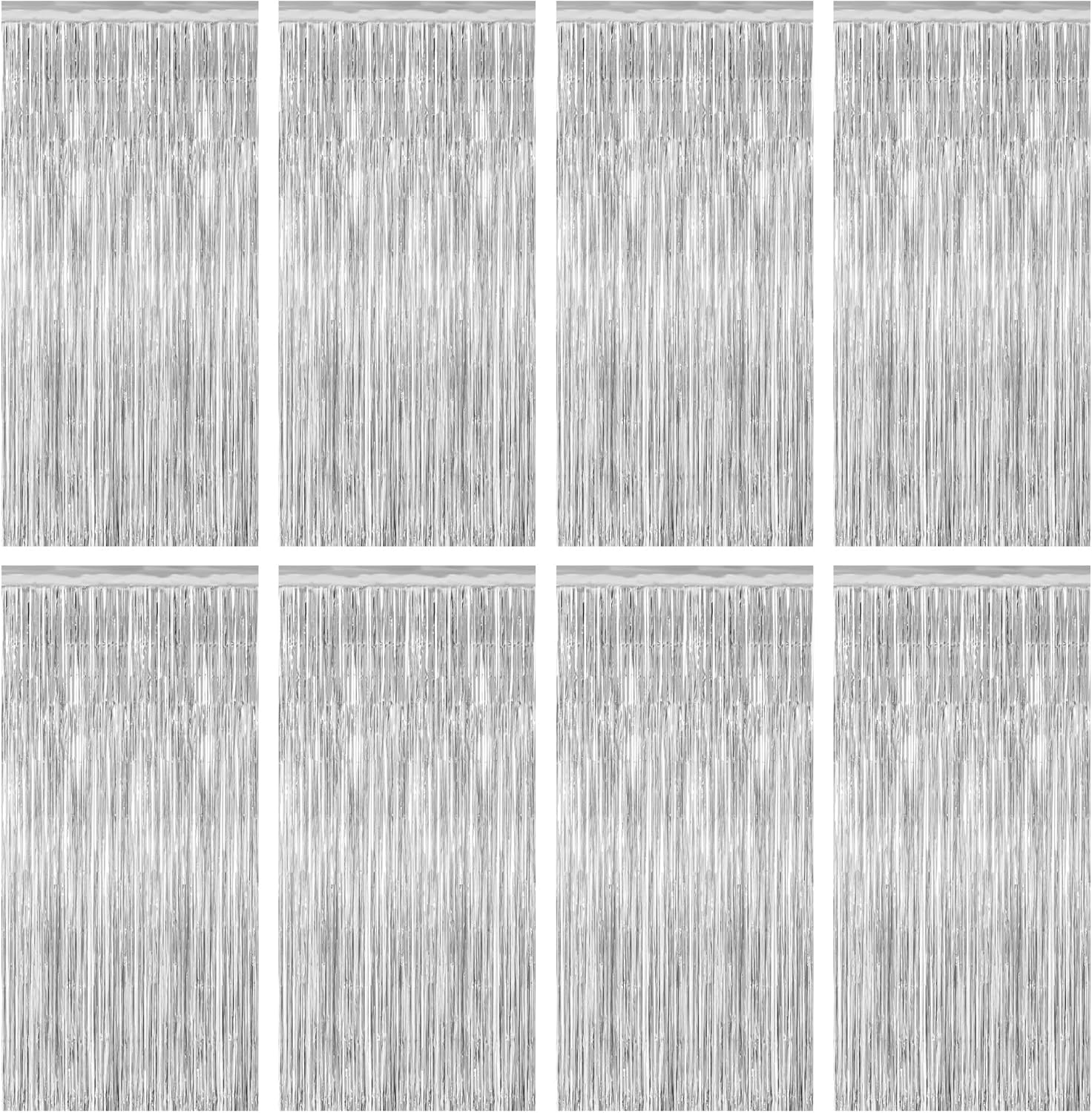 8 Pack Silver Backdrop, 3.28 FT x 7.05 FT Birthday Backdrop, Metallic Silver Tinsel Curtain Disco Party Streamer, Bachelorette Party Decorations Birthday Photo Booth Props