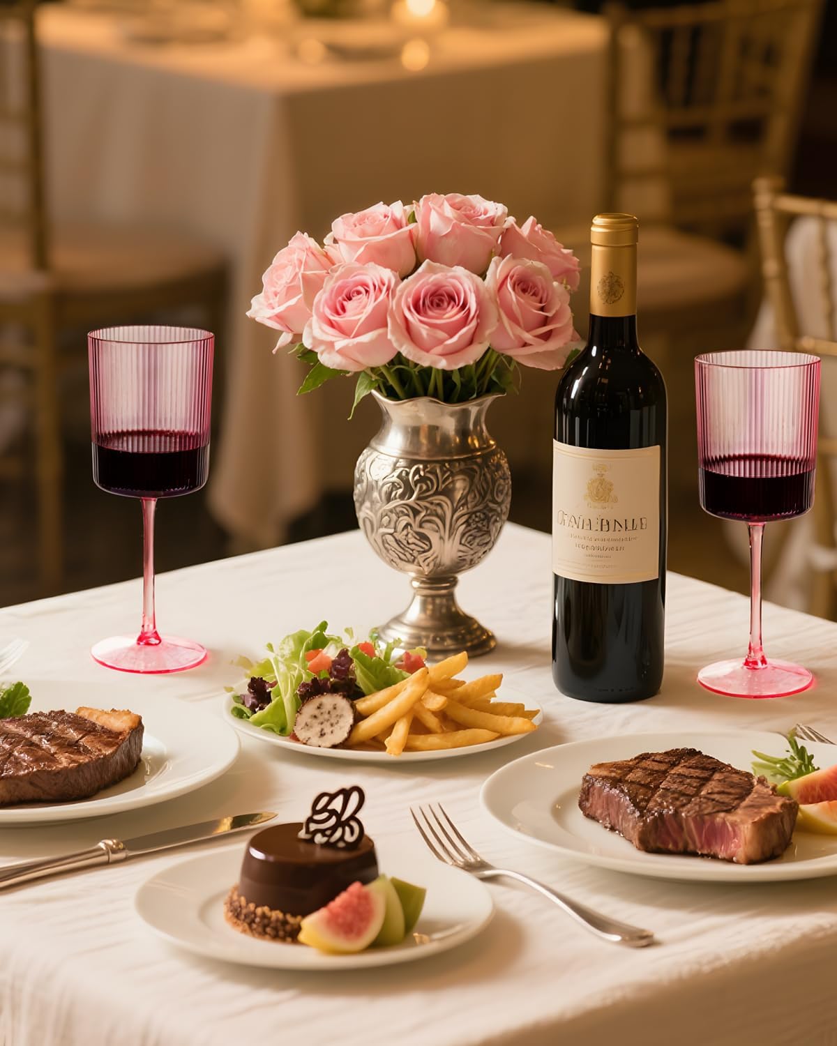 Ciaell 12 PCS Pink Plastic Ribbed Wine Glasses - 10 OZ Plastic Square Wine Glasses with Stem - Disposable Champagne Cups for Parties & Weddings & Party
