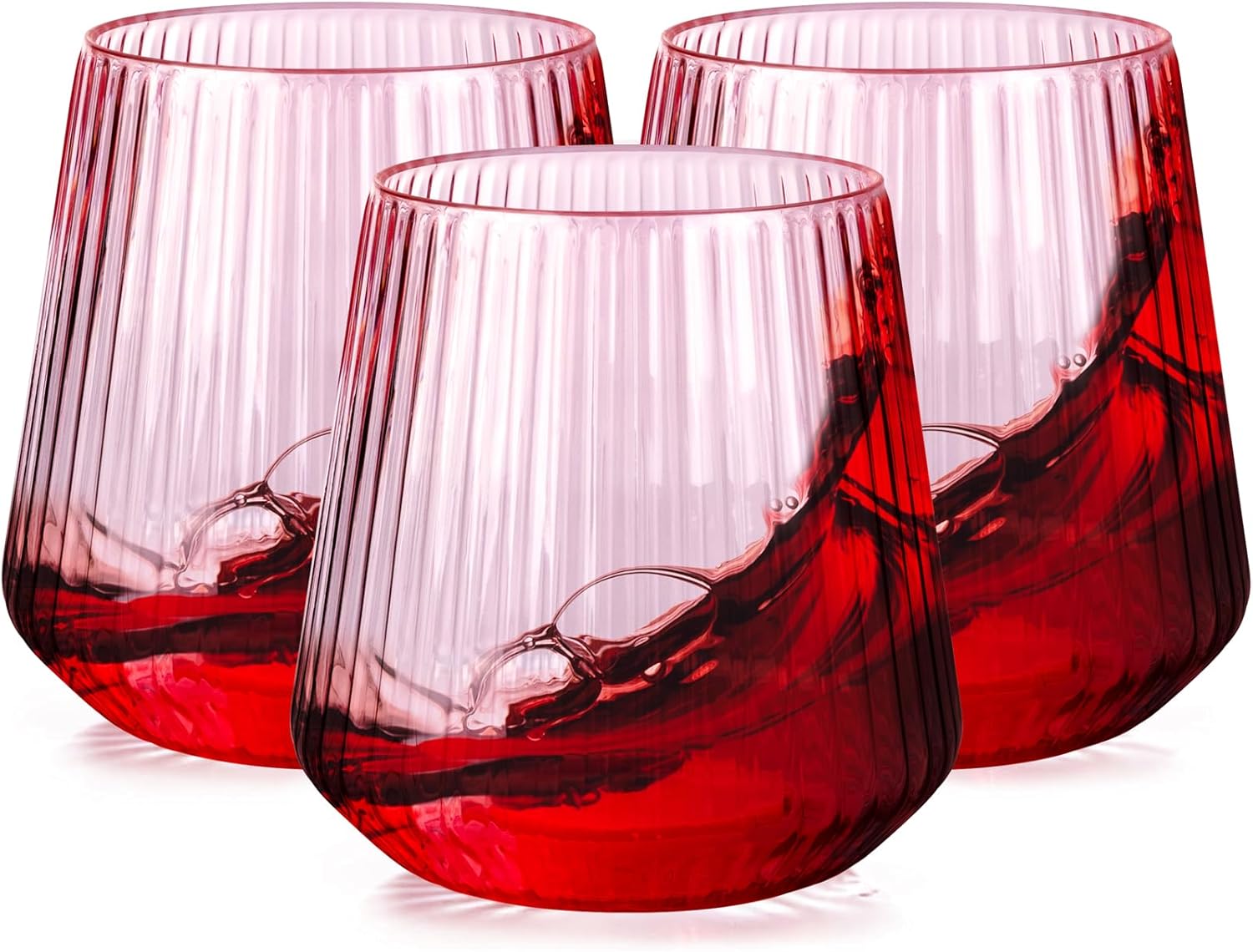 - Ribbed and Stemless Design:Featuring a ribbed and stemless design, these plastic cocktail glasses offer a modern and sleek appearance that complements any occasion. The plastic wine glasses disposable not only provides a comfortable grip and more elegant but also makes them easier to stack and store, saving space. The stemless design also provides better stability, reducing the risk of tipping compared to traditional stemmed cups.