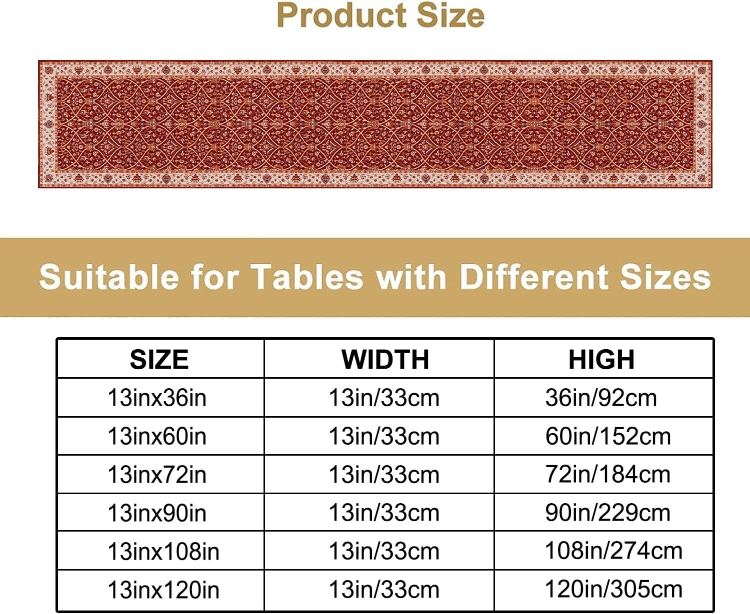 - Product Size : This tablecloth is 13 in ( 33 cm ) x 120 in ( 305 cm ), suitable for tables that can accommodate 10-12 people,better match your table and give you a pleasant dining experience